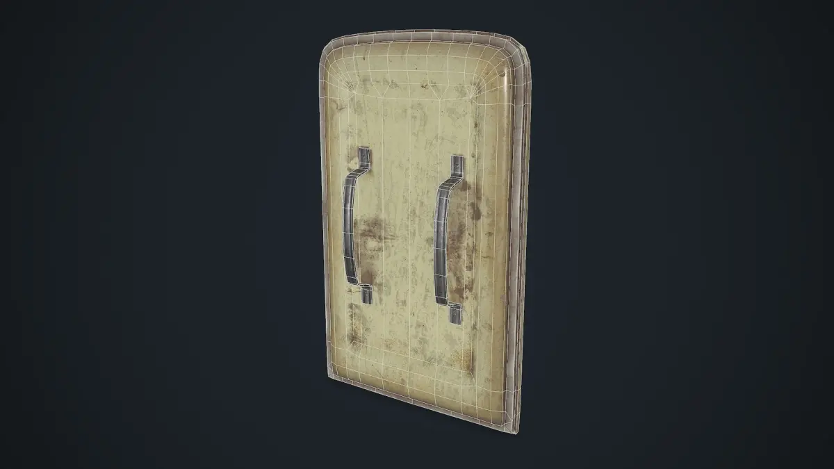 High-quality custom game-ready low-poly Post-Apocalypse shield assets made from old Soviet Refrigerator Dnipro.