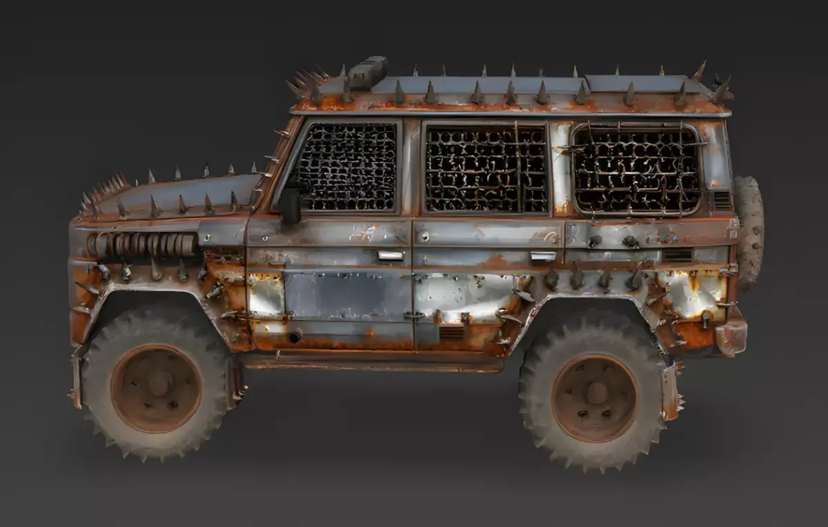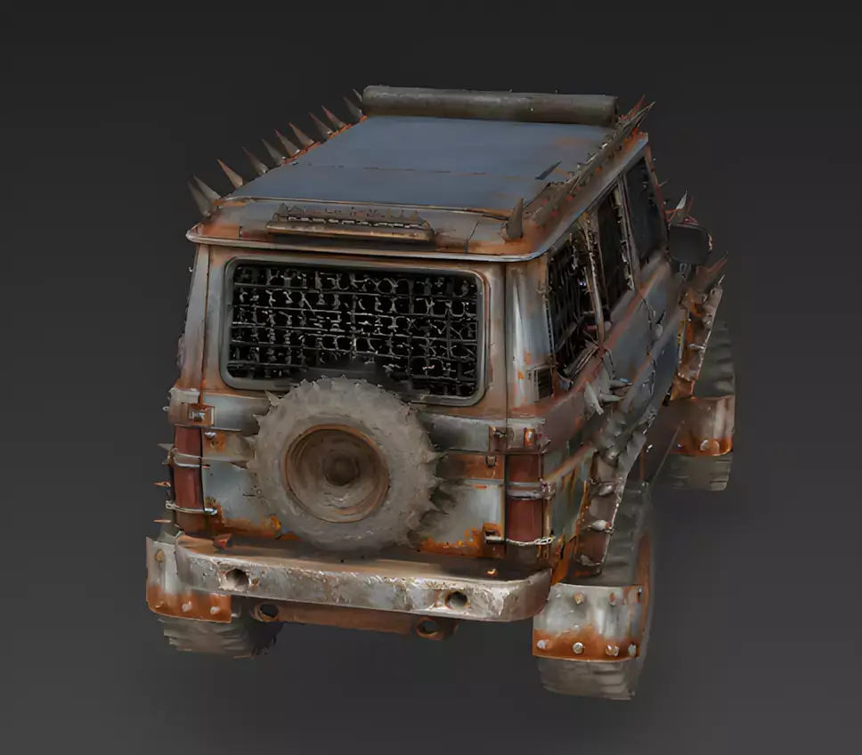The Overall ConceptThis asset is a heavy-duty, post-apocalyptic armored SUV designed for high-intensity survival scenarios. It features a wasteland aesthetic characterized by improvised defensive measures and a battle-hardened profile.
