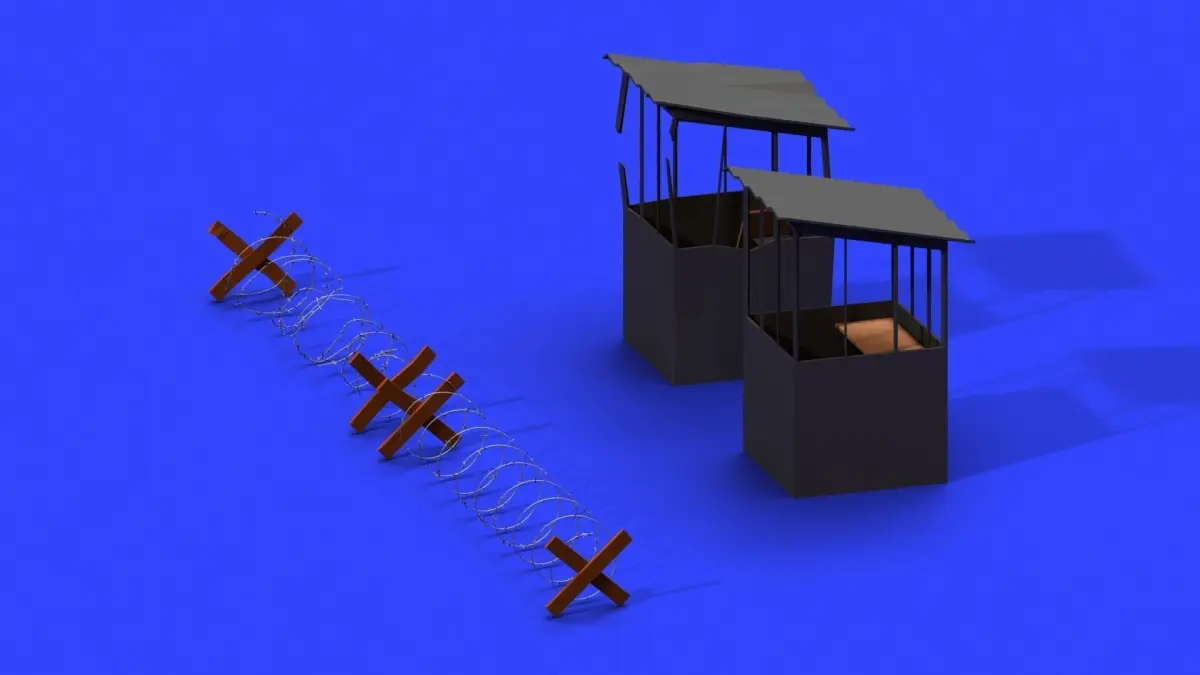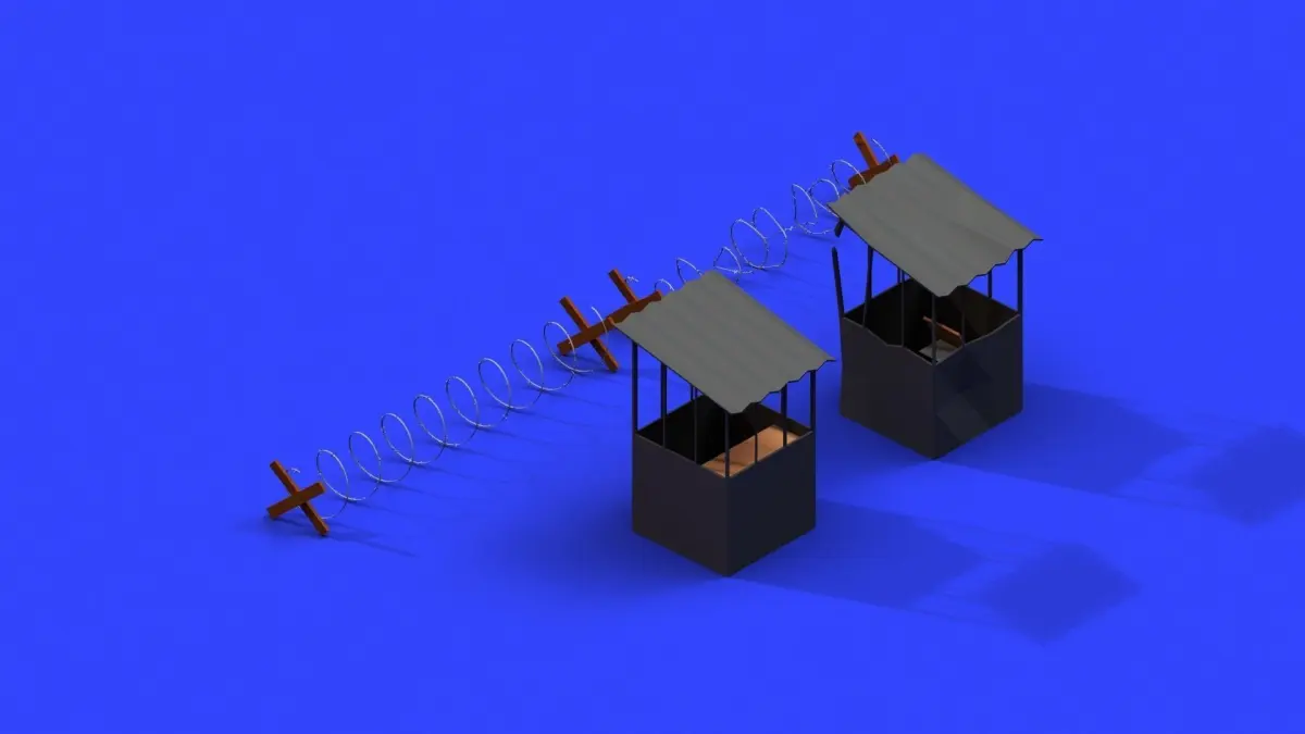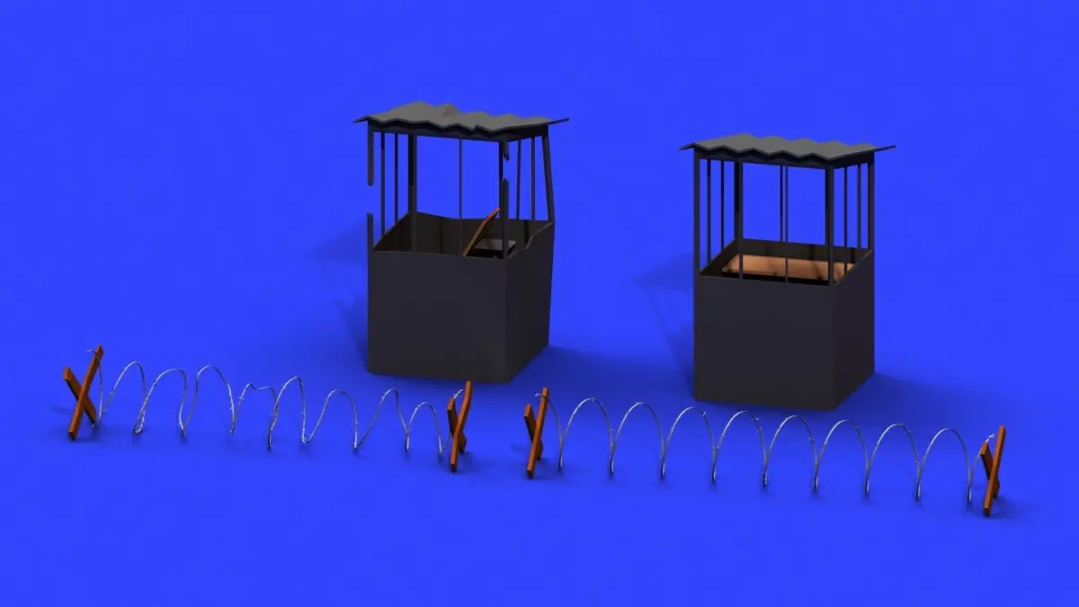 Low poly models of a barbed wire fence and a shed which come together with their damaged versions. So a total of 4 models with materials. To see the materials just drag and drop the fbx into Unity.