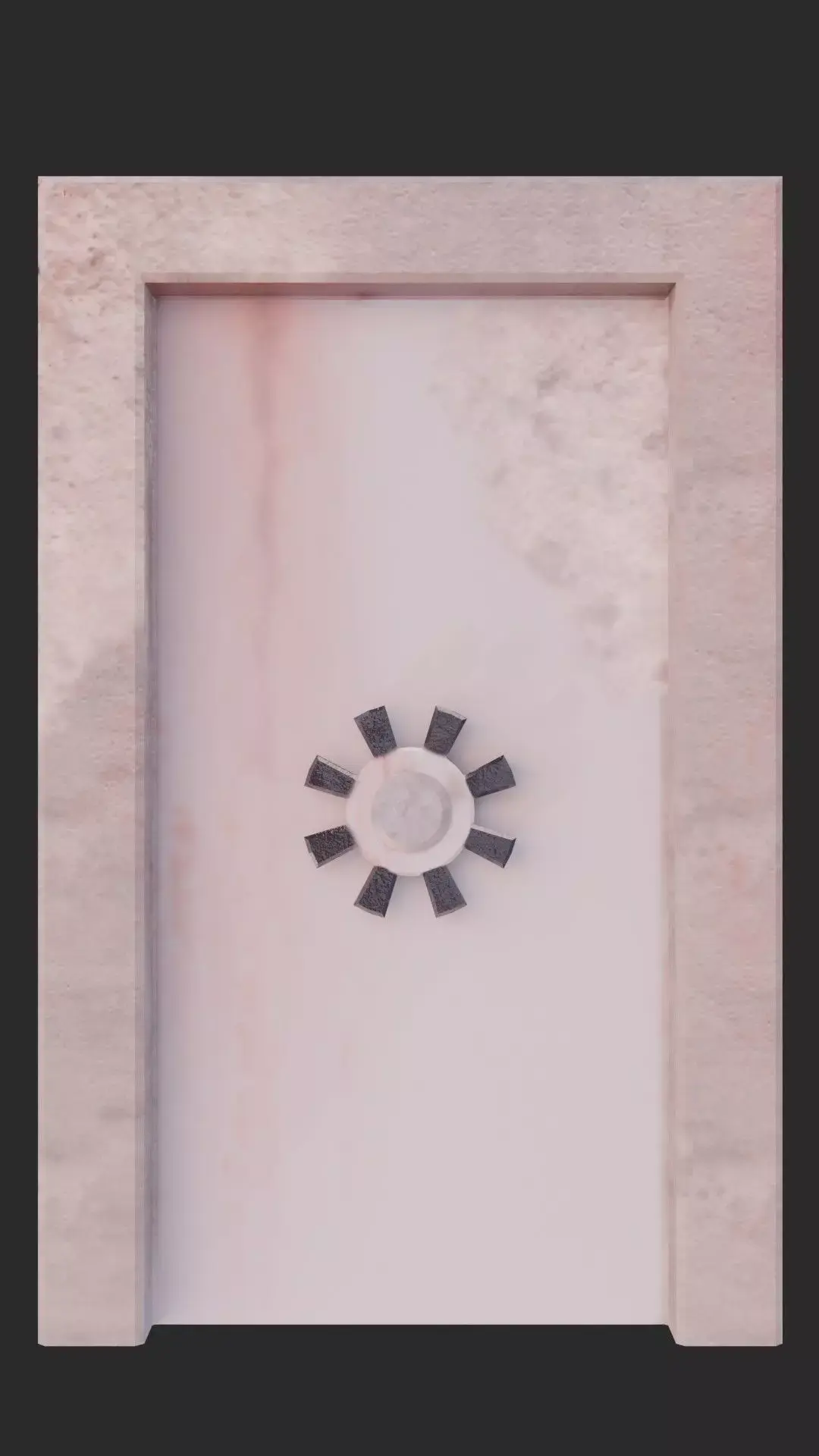 This highly detailed 3D model features a heavy industrial vault door embedded in a rugged stone or concrete frame. The door showcases a clean, slightly marbled white surface with a central multi‑spoke locking mechanism, delivering an authentic sense of security and durability. The surrounding frame has a rough, light‑beige stone texture, adding contrast and realism to the piece.