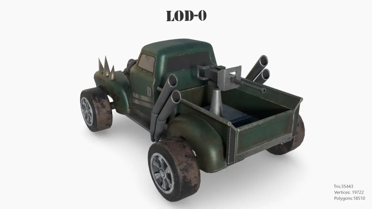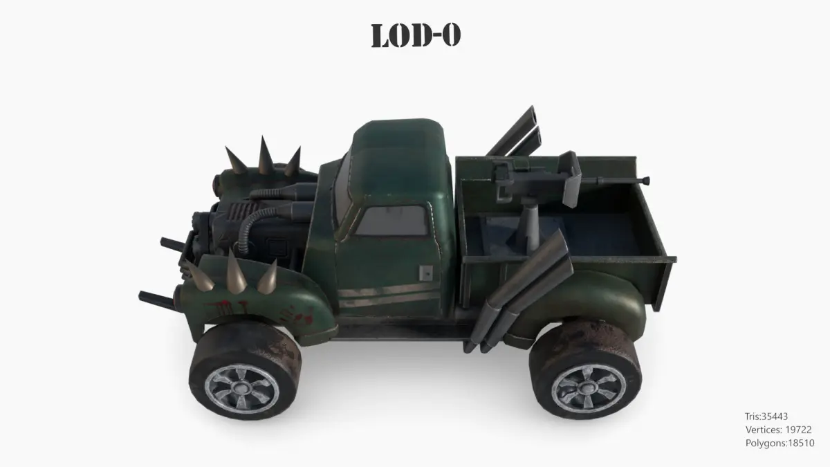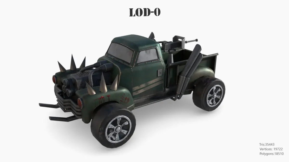 -Each LOD consists of 2 parts, a body and a wheel.