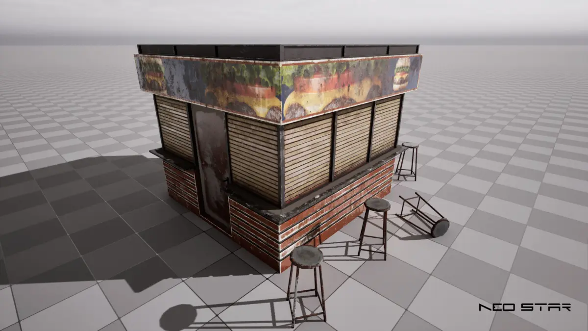 Low-poly abandoned food stalls designed for use in games. Featuring a worn and weathered aesthetic, these assets are perfect for post-apocalyptic environments. They are exterior only and share a single material to ensure optimal performance and to be easy to import into any game engine.