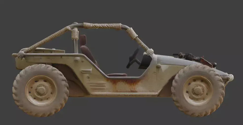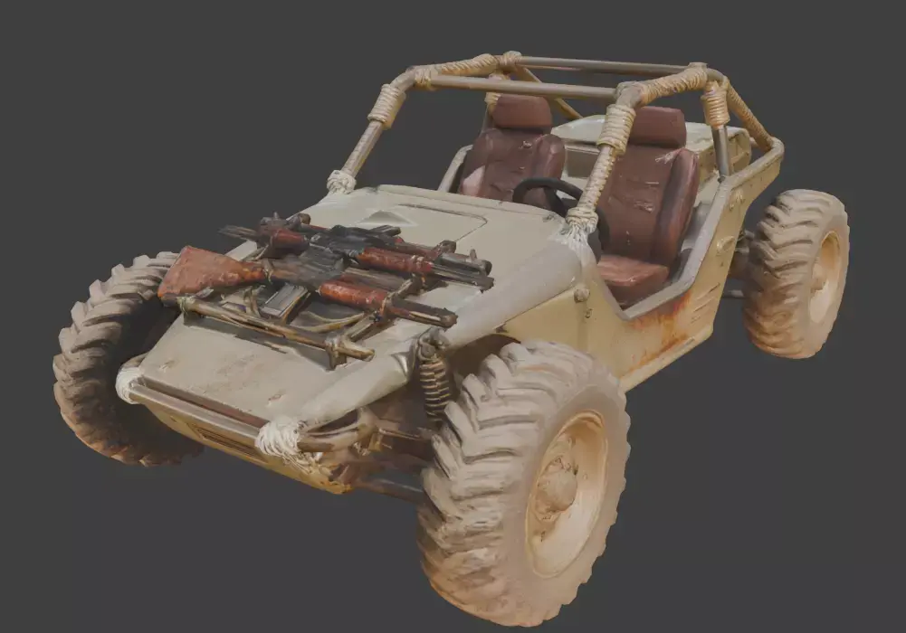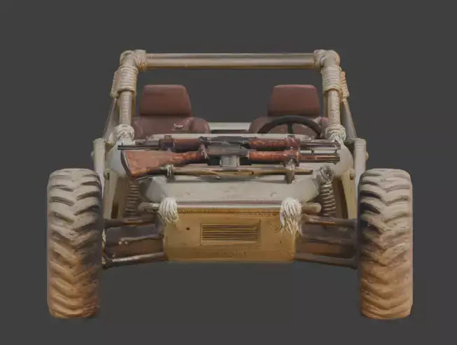 TagsVehicleBuggy3DModelMilitaryWildWestWastelandRifleRackRopeDesertOffRoadPBRGameReadyUnityUnrealLowPoly4KWeatheredRuggedOliveDrabSurvival