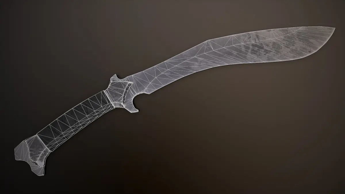 It's a Post-Apocalyptic Kukri! It can be used as a weapon or background clutter in a video game, or perhaps a prop in a movie. It's been given a bit of wear and tear to help it fit into more Post-Apocalyptic and dusty/dirty environments.