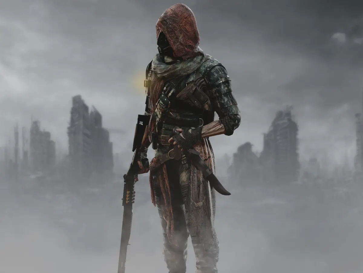 Detailed low poly 3D character Post apocalyptic man