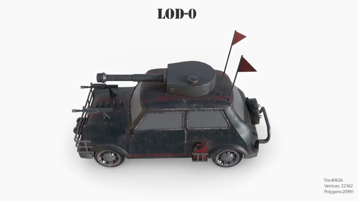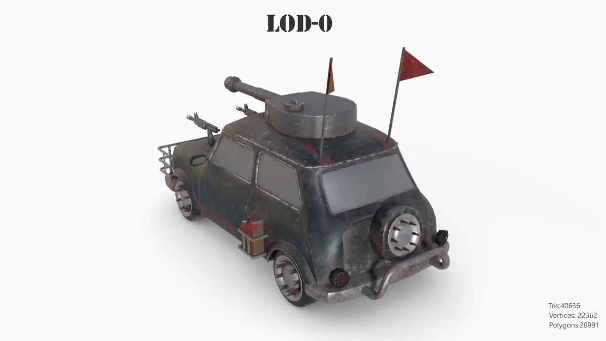 -Each car consists of body and wheel parts. It also consists of LOD0, LOD1 and LOD2.