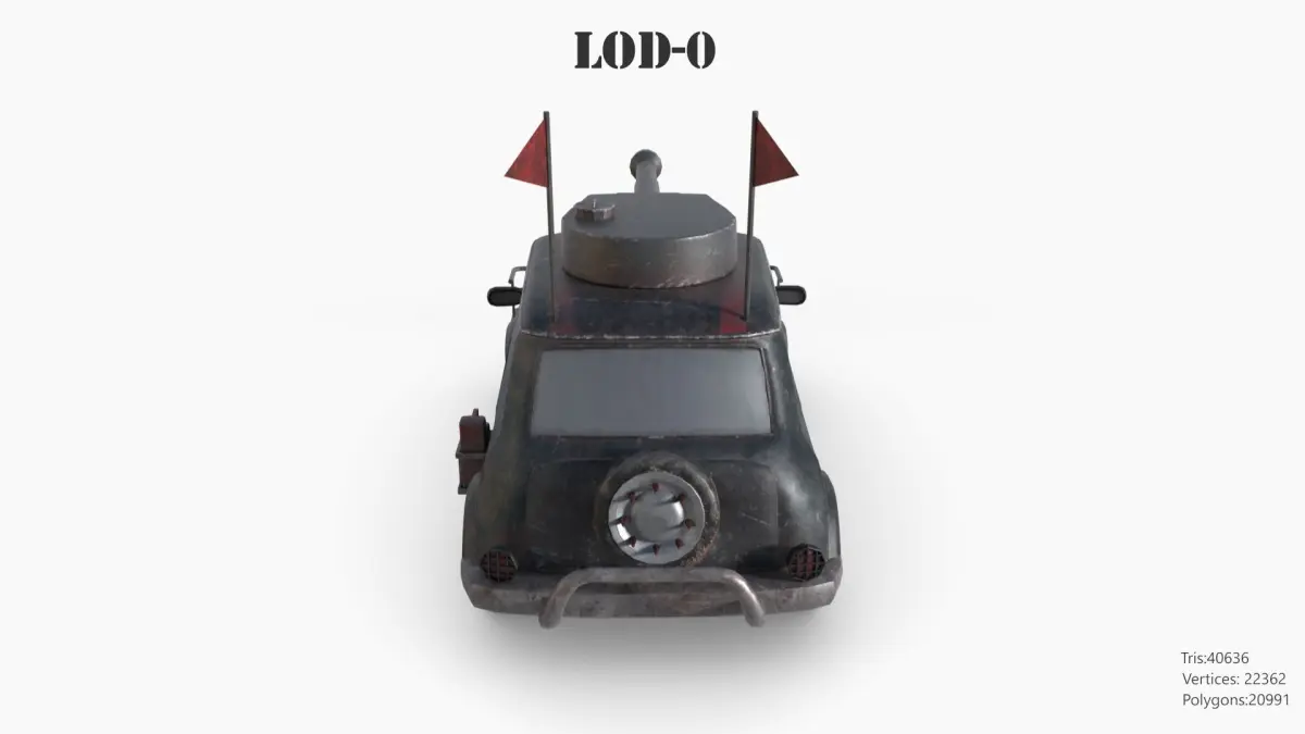 LOD2: Tris: 6255 Vertices: 4506 Polygons: 3601