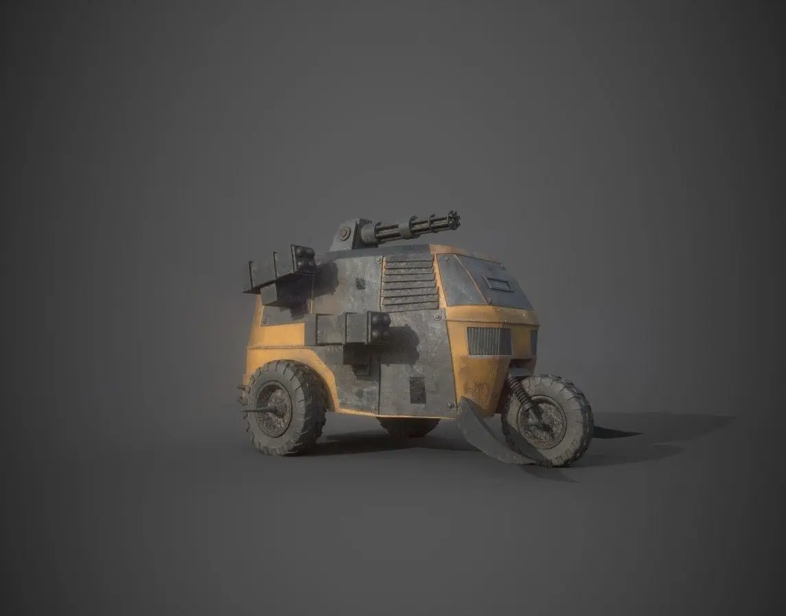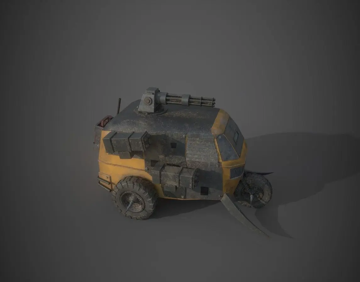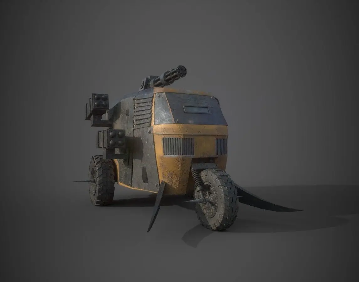 The Post apocalyptic monster tricycle is a game ready, low poly vehicle asset. The model is uv mapped with pbr textures. Polycount: 21 521Verts: 22 400Available formats are fbx and obj.