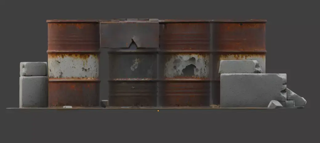 Tagsbarricadebarrelsoil barrelpost-apocalypticrustedwastelanddefensecoverconcreterubblebarbed wireindustrialmilitaryscavenged3d assetsurvivalurbancombatruinsfortification