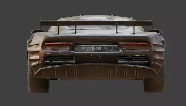 Heavy-Duty External Armor: Riveted rusted metal plates provide a layer of protection and technical depth to the supercar's silhouette.