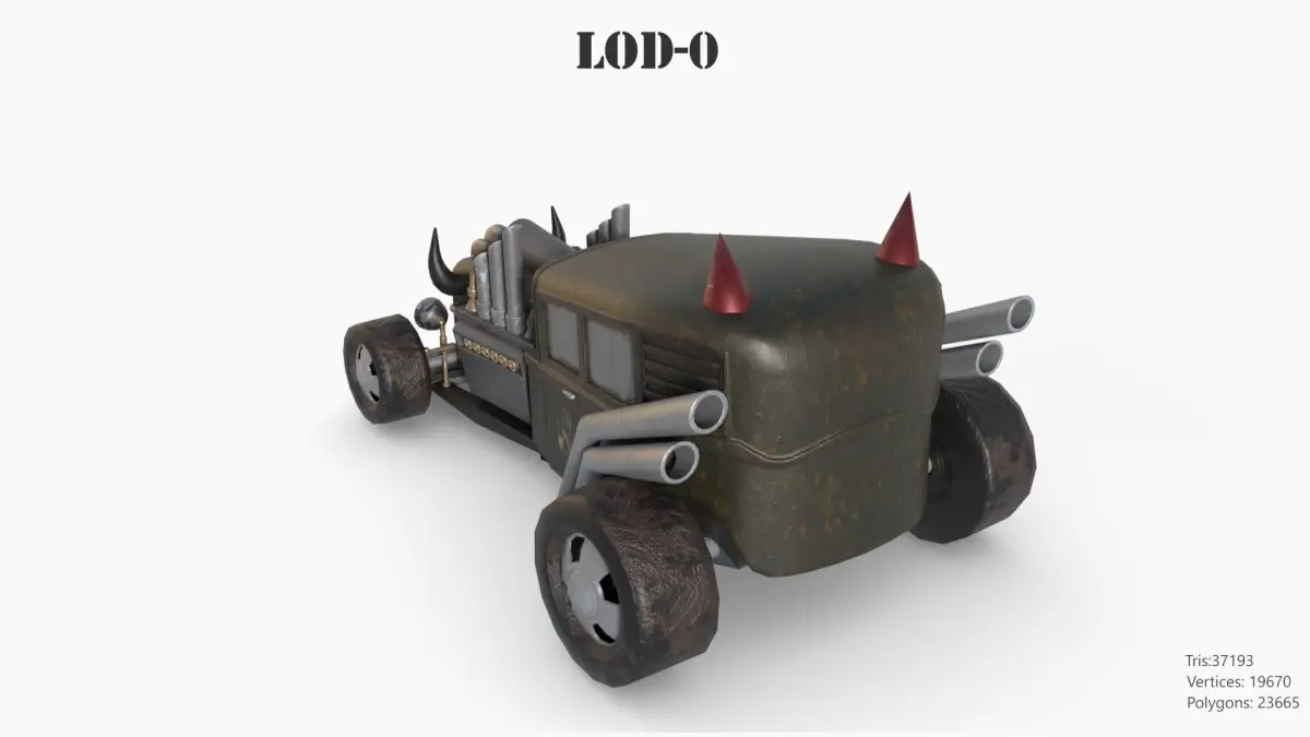 LOD0: Tris: 37193 Vertices: 19670 Polygons: 23665