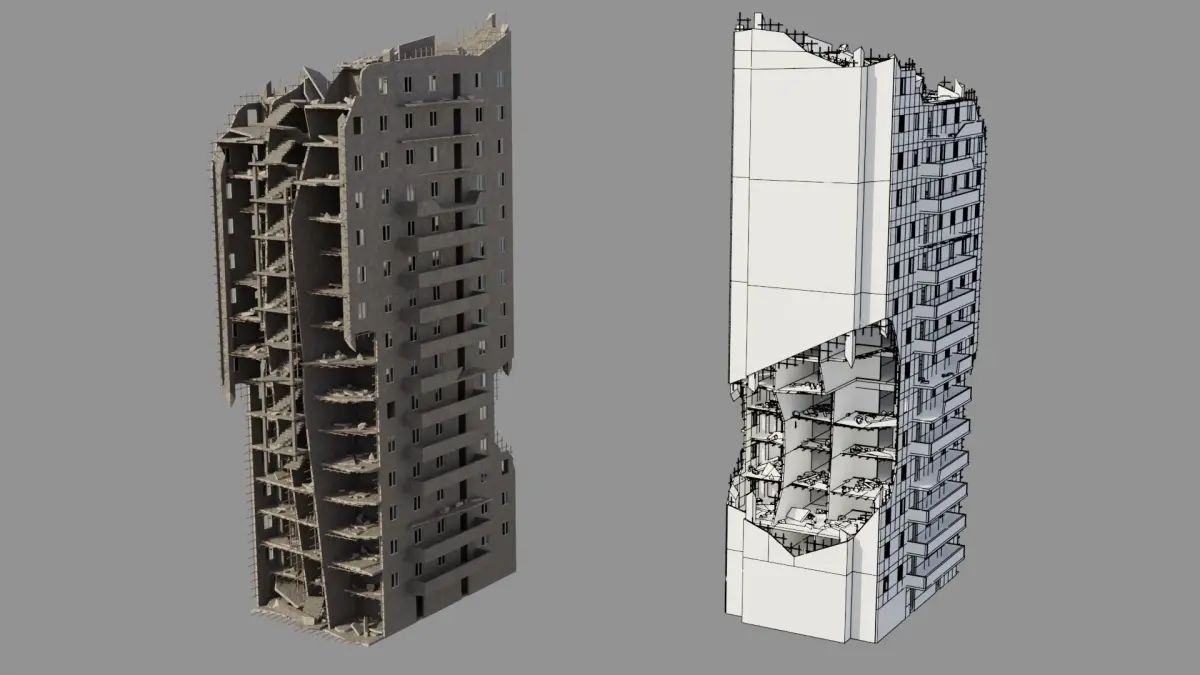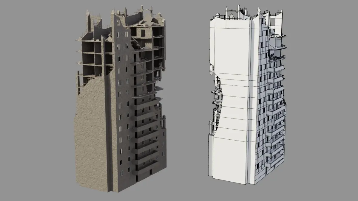 Includes 24 ruined buildings, 14 roads, 6 bridges,3 drainage channels, subway and debris. You can easily change the position of buildings or copy them to create a larger city. Designed to be modifiable.