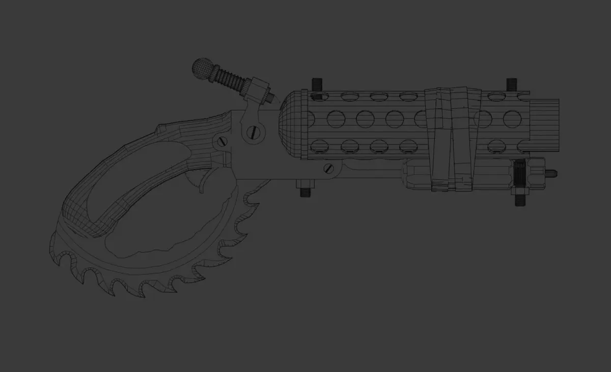 Post-apocalyptic shotgun with a brass knuckles saw in the handle