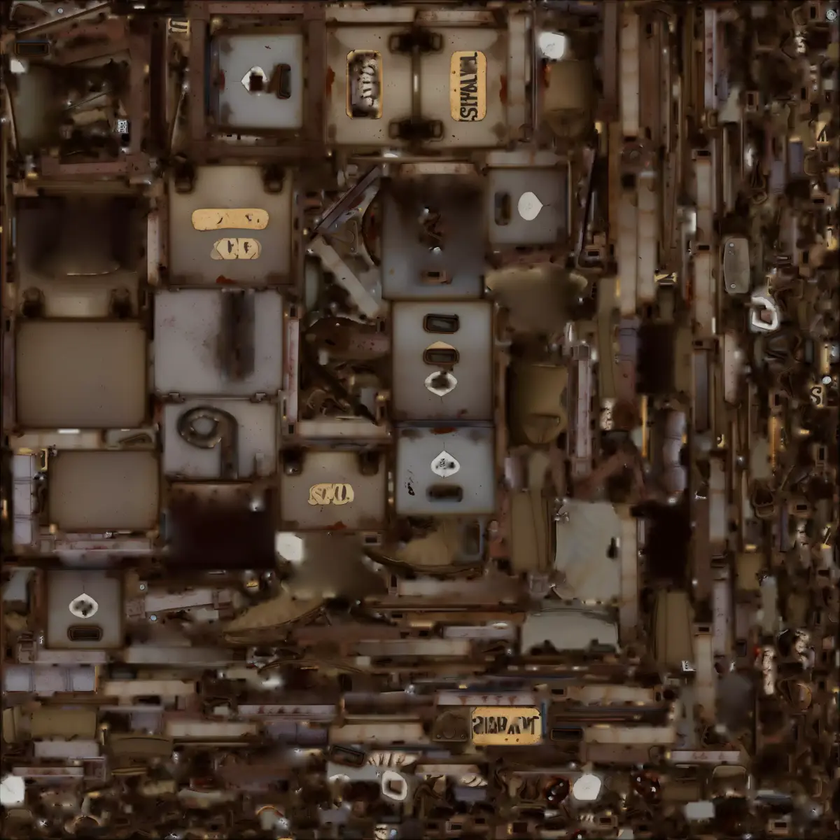 Post Apocalyptic Texture Features realistic, heavy rust, peeling paint, and grime textures.