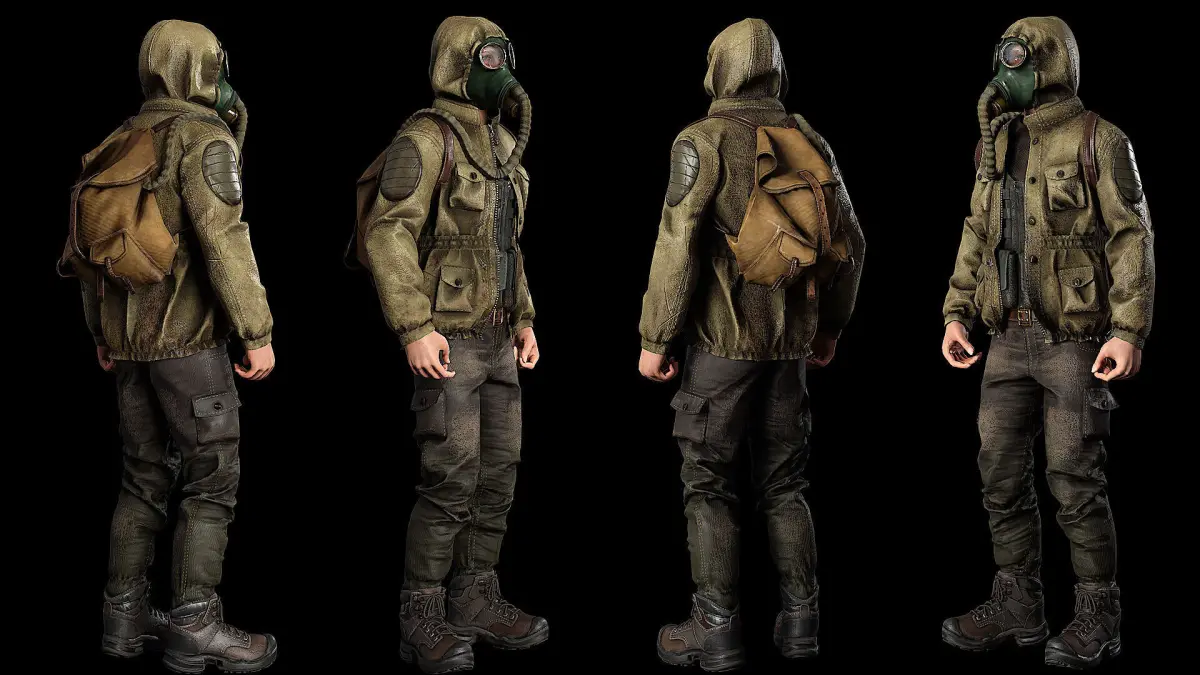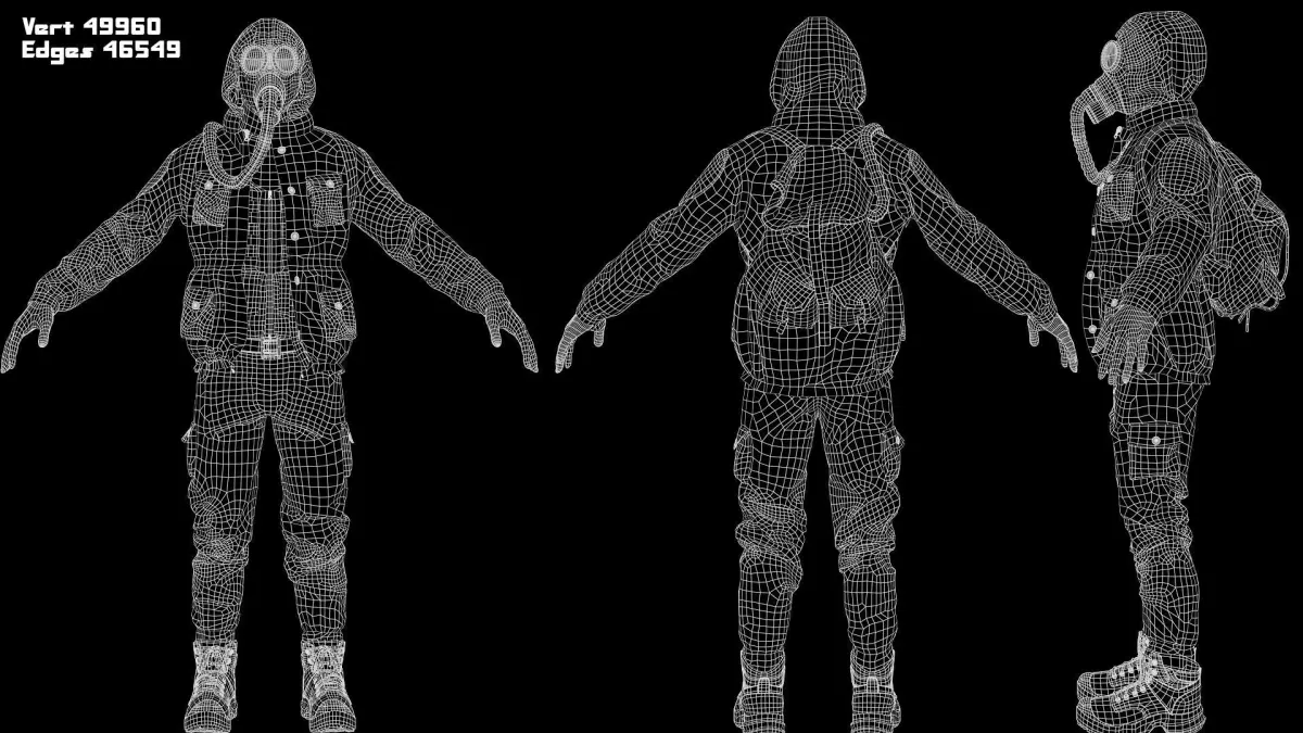 Game ready character for your projects in the style of survival and post-apocalypse, includes 7 standard demo animations in Unreal engine, consists of 4 four parts, a backpack and a gas mask, a jacket, pants and boots, a head and hands.