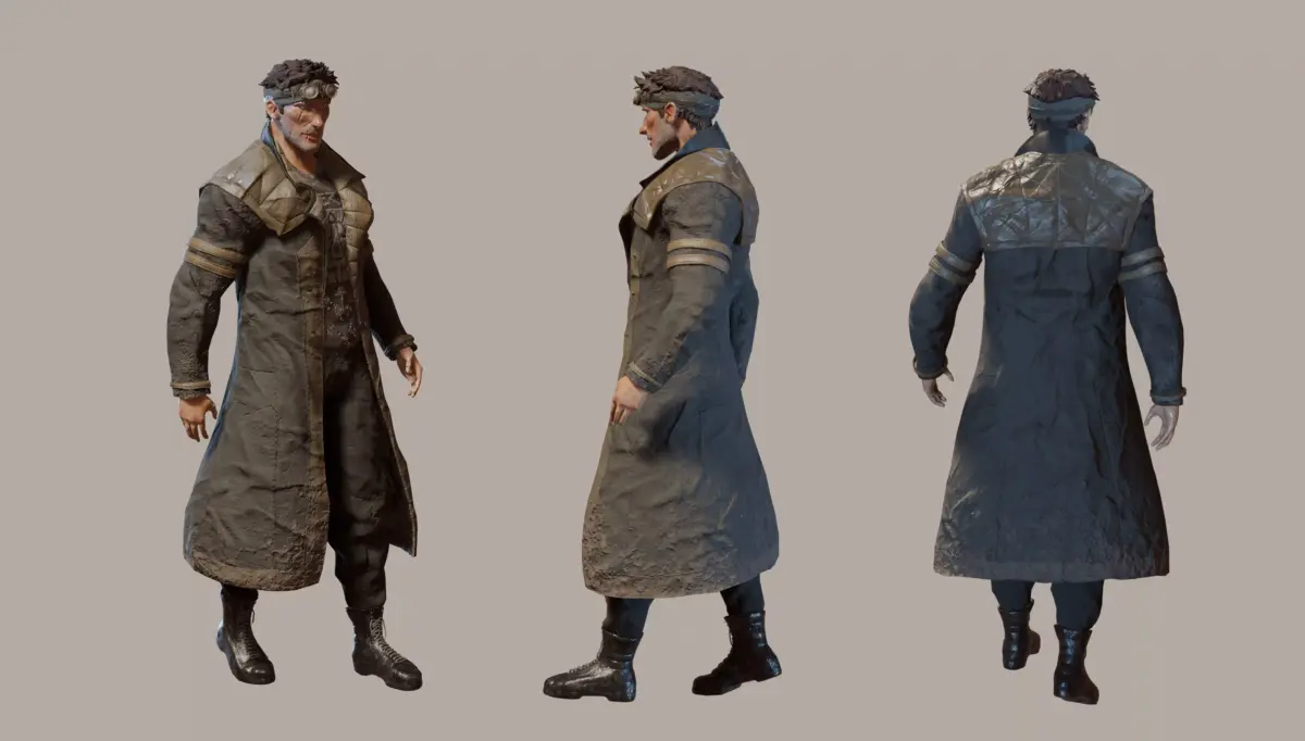 Post-apocalyptic survivor character with a rugged long coat and explorer goggles. Designed for real-time rendering and suitable for games, cinematics, or visualizations.