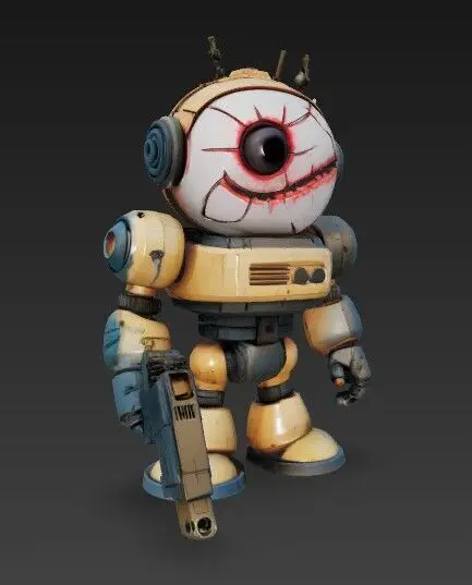 DescriptionBring a shattered future to life with this striking 3D printable robot figurine! With its single glowing red eye, cracked and worn body, sharp metallic spine extension, and heavy weapon in hand, this robot looks like it just emerged from the ruins of a post-apocalyptic warzone. Whether you’re curating a dark sci-fi collection or seeking a piece with gothic, dystopian flair, this figure will command attention and add tension to any display.