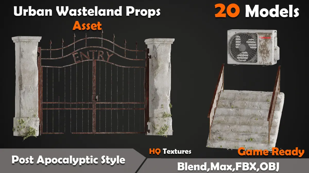 15 unique modular assets inspired by real-world urban decayRealistic PBR materials with baked ambient occlusionIdeal for post-apocalyptic, dystopian, or abandoned environmentsOptimized meshes for real-time engines (Unreal, Unity)HQ textures – Albedo, Roughness, Normal, AO, MetalnessClean naming & hierarchy for easy scene organizationGame-ready Blender Version is 4.2CyclesMax Version Is 2018 CoronaFBX and OBJ