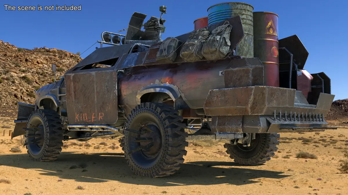 Post-Apocalyptic War Truck With Barrels is a high quality, photo real 3d model that will enhance detail and realism to any of your rendering projects. The model has a fully textured, detailed design that allows for close-up renders, and was originally modeled in 3ds Max 2020 and rendered with V-Ray. Renders have no postprocessing!