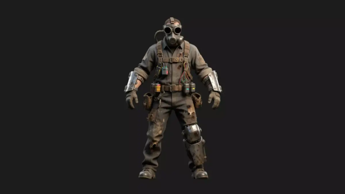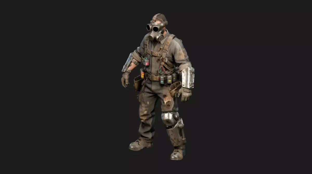 The character’s overall aesthetic is perfect for a range of gritty, harsh environments, including radioactive zones, chemical contamination scenarios, forgotten underground complexes, and dystopian futuristic worlds. The blend of manual labor attire with scavenged advanced technology makes this model especially suitable for roles like mechanic, engineer, scavenger, and toxic-zone survivalist.