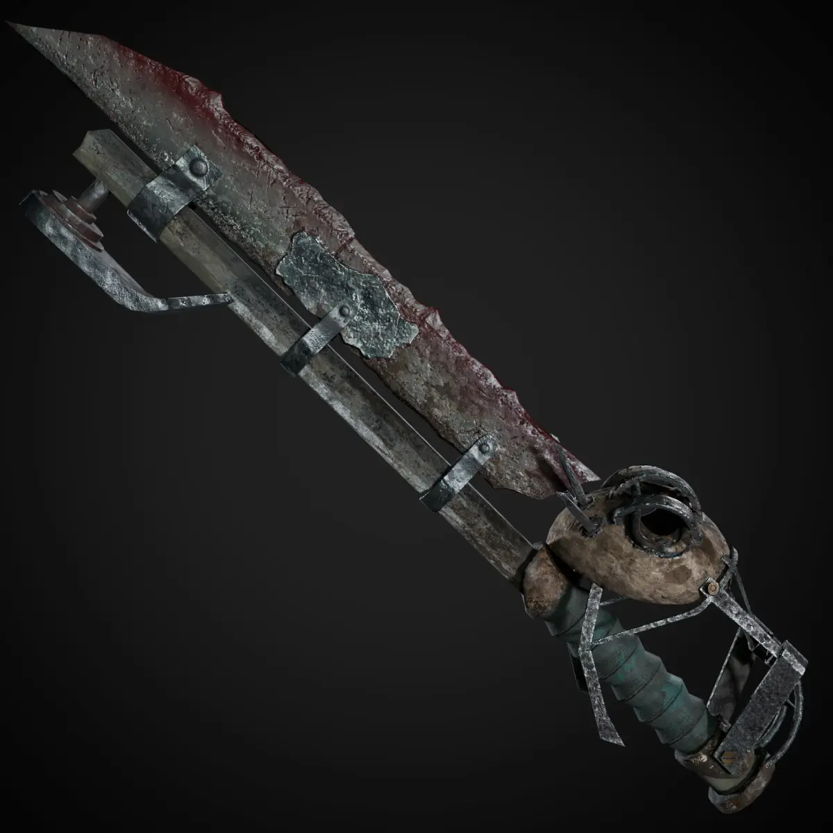 Unleash chaos with this savage post-apocalyptic scrap sword — a brutal fusion of rusted metal, bolted plates, and makeshift engineering. Featuring a jagged, oversized blade and a reinforced grip constructed from scavenged parts and industrial materials, this weapon oozes raw power and survivalist craftsmanship. Ideal for gritty characters, boss enemies, or player gear in dystopian worlds.