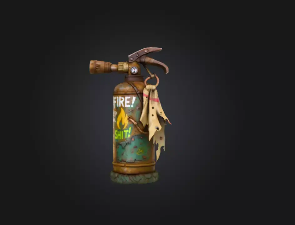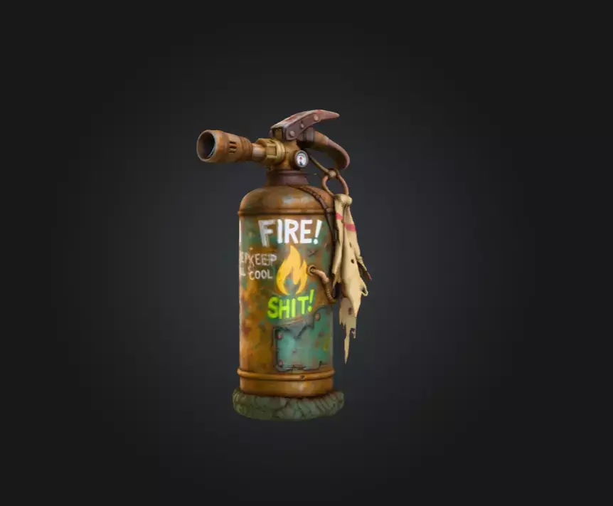 Ideal for post-apocalyptic games, survival storytelling, environmental props, FPS loot items, abandoned facility scenes, and stylized wasteland art, this extinguisher blends humor, decay, and grit into a visually rich world-building asset that instantly communicates danger and resourcefulness.
