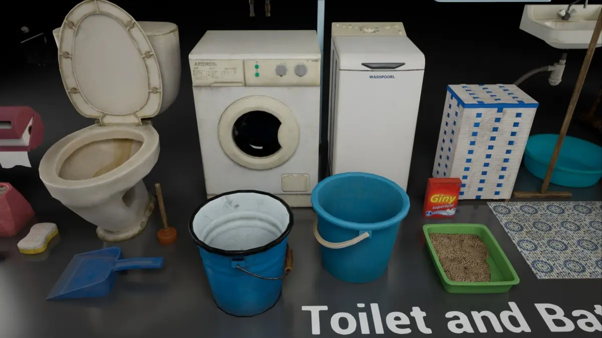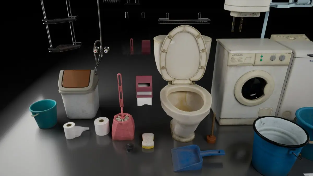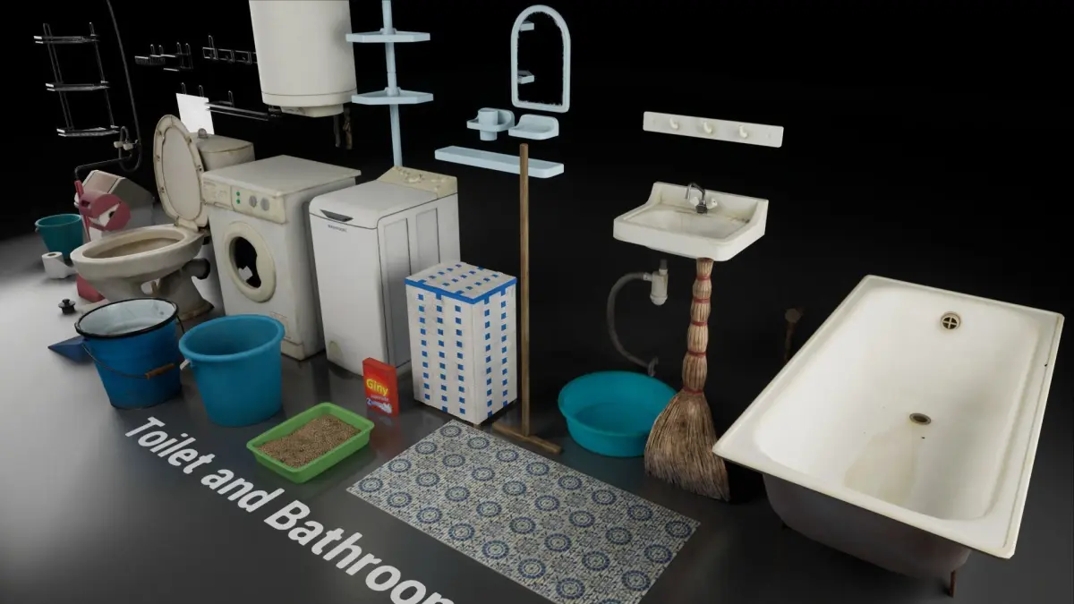 Pack of soviet toilet and bathroom with common props.