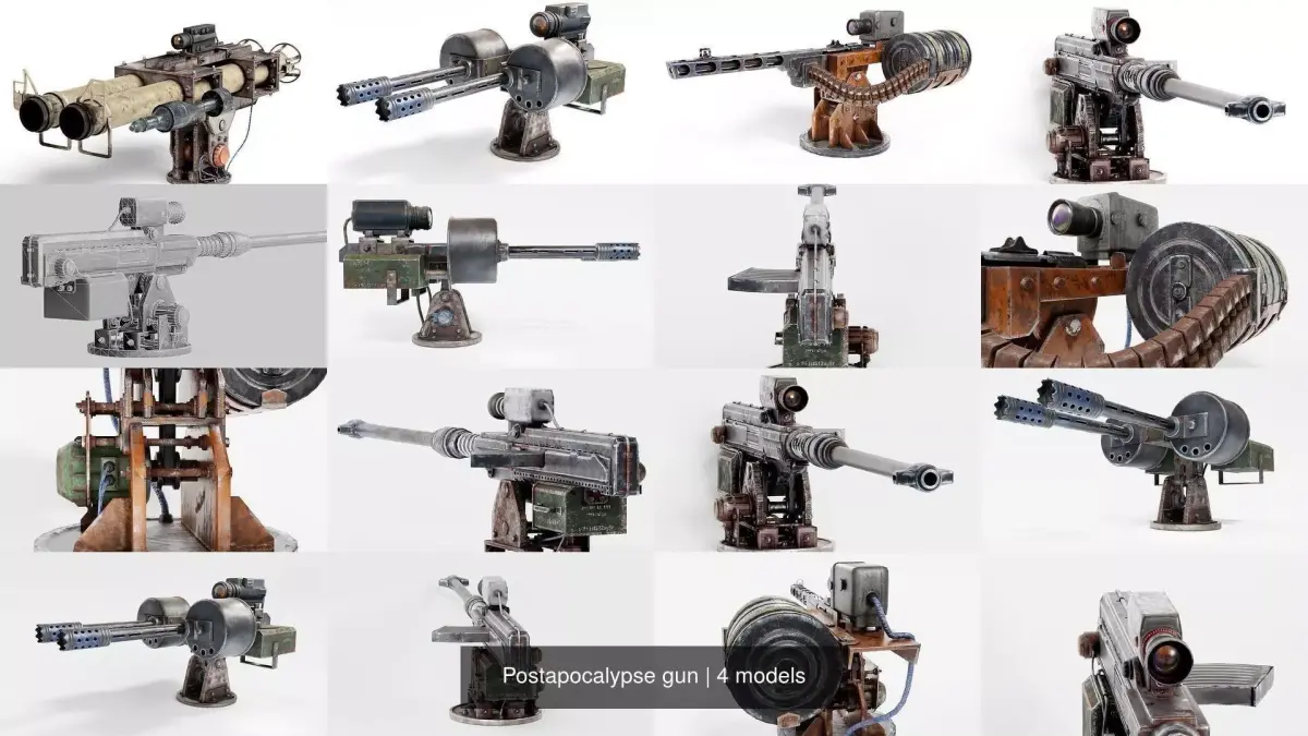 1) Double shotgun2) Machinegun3) Rocketlauncher4) Sniper rifle