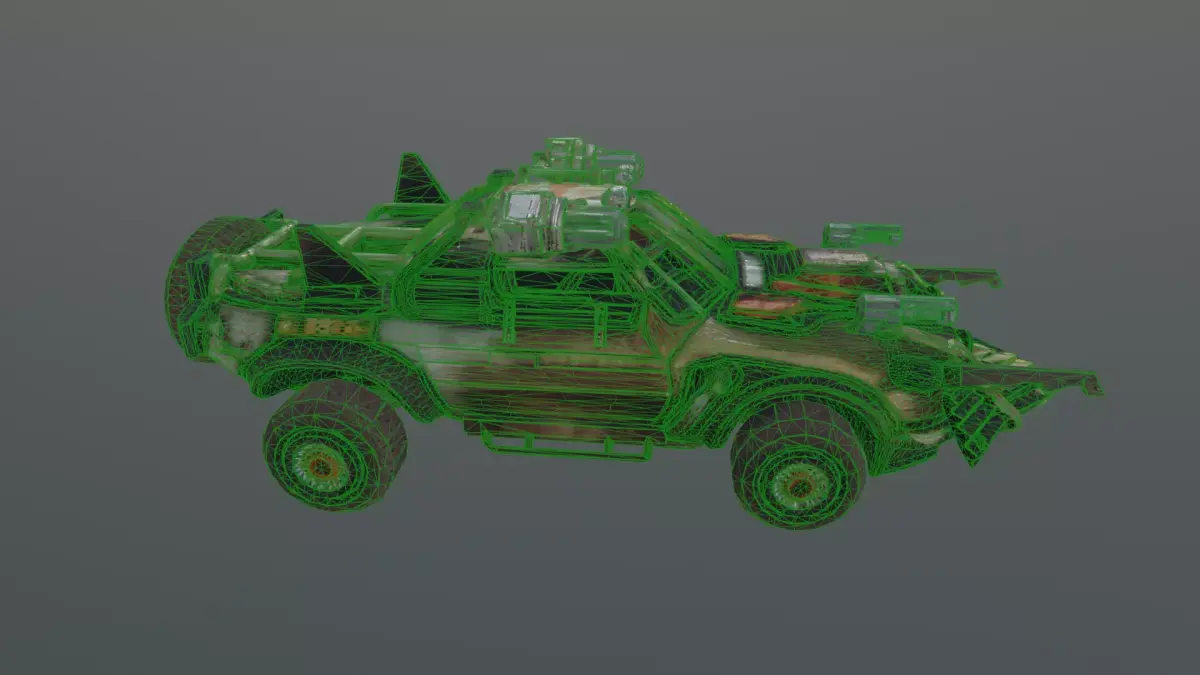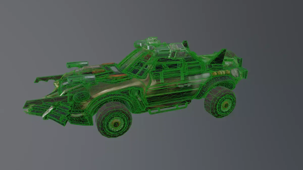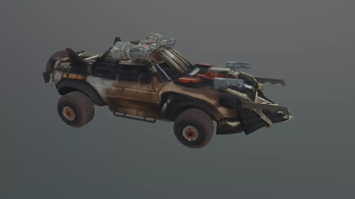this game-ready vehicle prop is optimized for high-performance integration into modern game engines. It features a heavily modified chassis with a front-mounted plow and reinforced window grates, all rendered with realistic weathered textures. The download includes industry-standard Blend, FBX, and OBJ formats, making it ready for immediate use in Blender, Unreal Engine, or Unity.