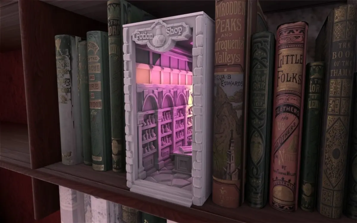 Fantasy booknook that you can assemble to create a setting within your bookcase.