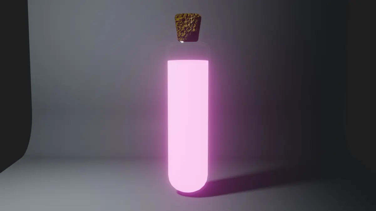 A small glass vial filled with a mesmerizing, glowing liquid that pulses with an otherworldly light. The liquid inside swirls slowly, casting soft, luminescent rays that dance across the surface of the bottle. Its color shifts subtly between deep azure and vibrant emerald, hinting at the powerful magic contained within. The potion emits a gentle warmth when held, and the light seems to respond to nearby energy sources, glowing brighter in the presence of magic. This potion is said to restore vitality and enhance the user’s aura, making it a sought-after elixir among adventurers and sorcerers alike.