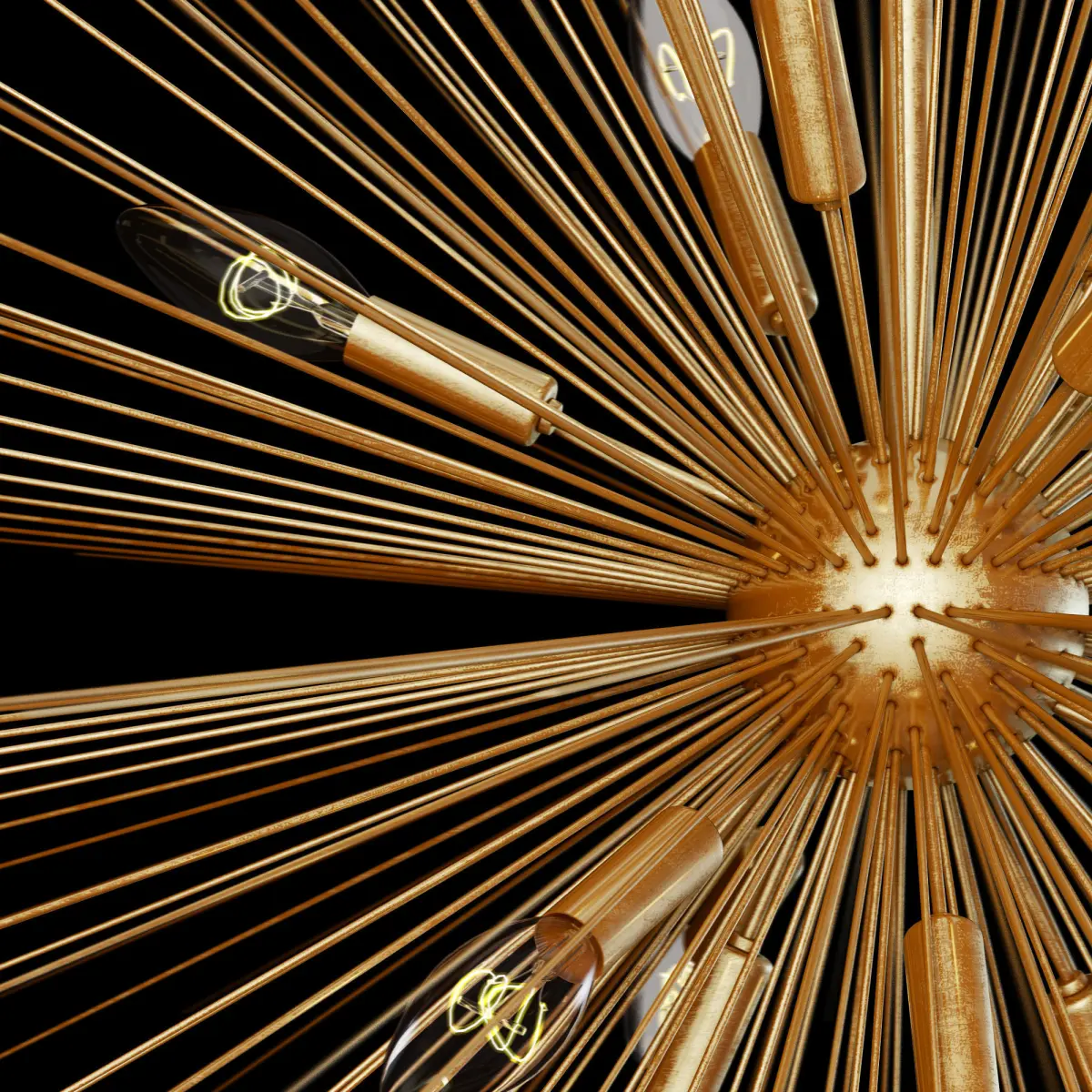 A spray of brass-finished rods creates this stunning design that brings high fashion to any space.