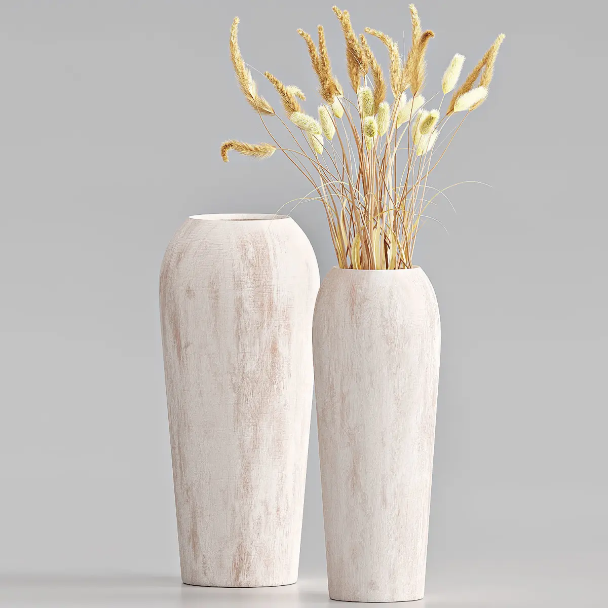 Pottery Barn Handmade Mango Wood vases with dried flowers