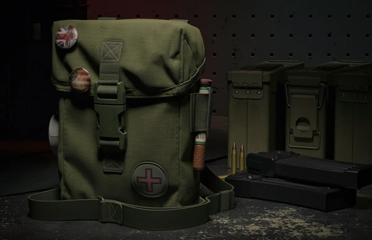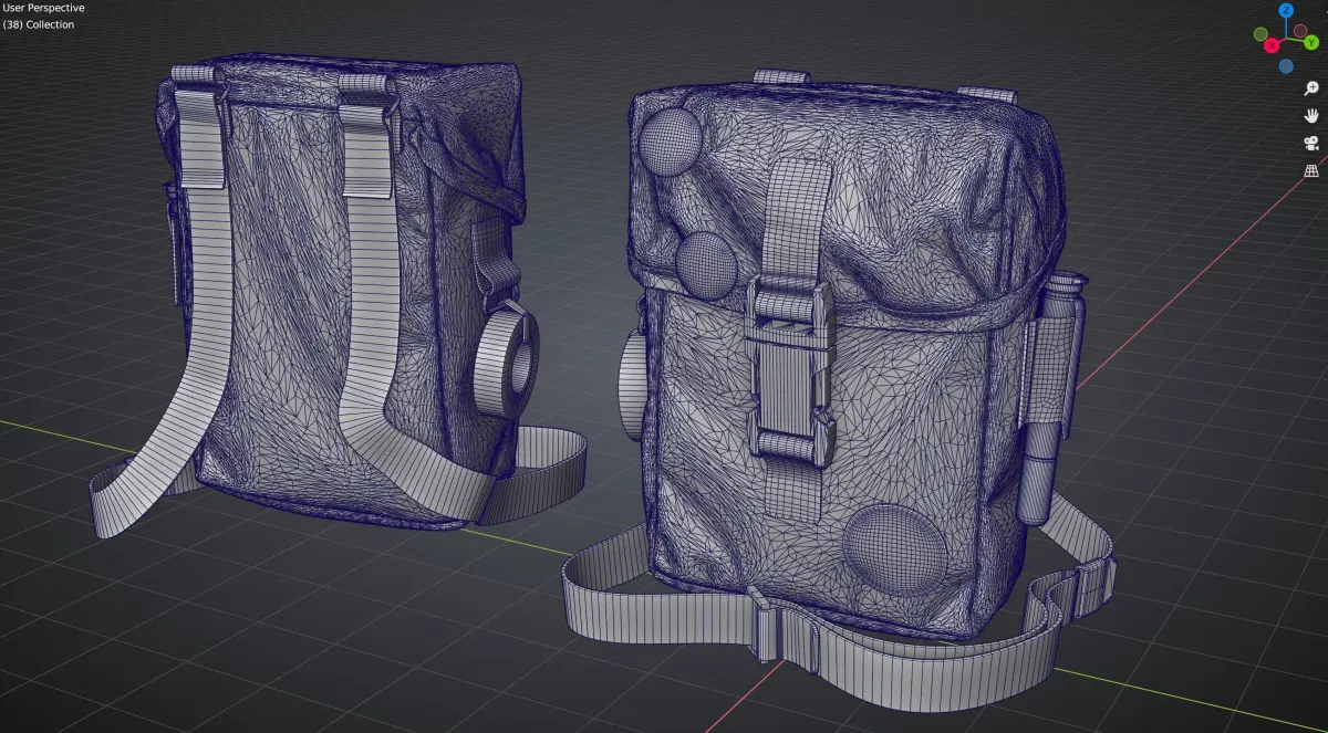 lowpoly decimated pbr metal roughness high quality pouch medical military