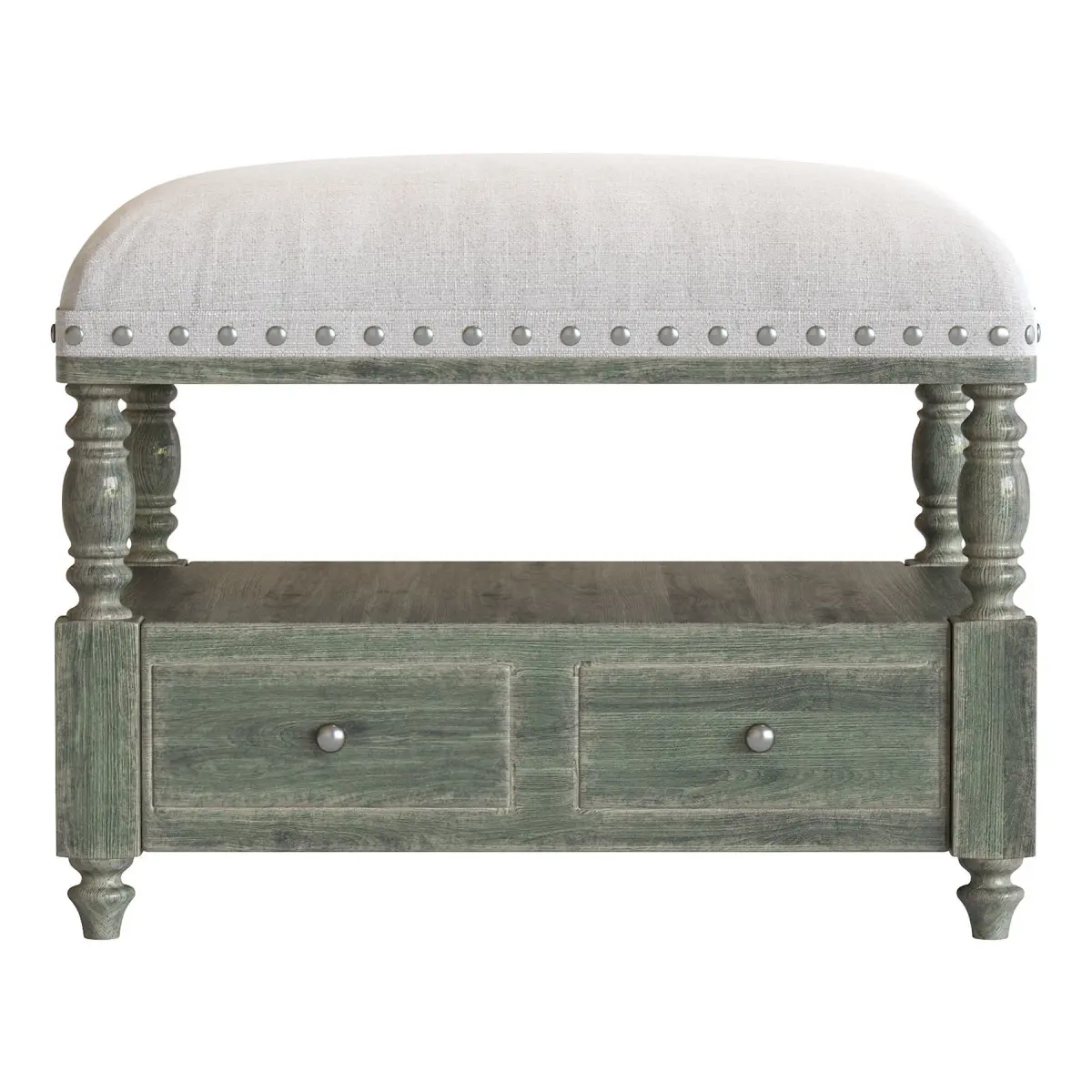 Uttermost's Benches Combine Premium Quality Materials With Unique High-style Design. With The Advanced Product Engineering And Packaging Reinforcement, Uttermost Maintains Some Of The Lowest Damage Rates In The Industry. Each Product Is Designed, Manufactured And Packaged With Shipping In Mind. Hand Turned Hardwood With A Light Weathered Finish Which Shows Off The Natural Graining. Covering Is A Neutral White Canvas Blend Accented With Silver Finished Nail Heads. Two Generous Drawers And Shelf Make This A Wonderful Storage Solution. Bench Is Fin Hand Turned Hardwood With A Light Weathered Finish Which Shows Off The Natural Graining. Covering Is A Neutral White Canvas Blend Accented With Silver Finished Nail Heads. Two Generous Drawers And Shelf Make This A Wonderful Storage Solution. Bench Is Fin