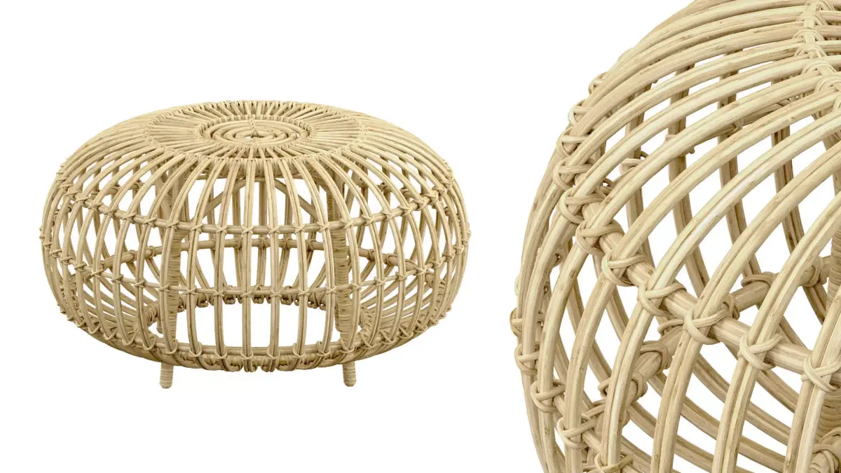 Size (cm) DIA 65 H 35It is the high-quality hi-poly smoothable 3D model wicker round pouf used in various fields 3D Graphics such as: game development, advertising, interior design, motion picture art, visualization, etc..