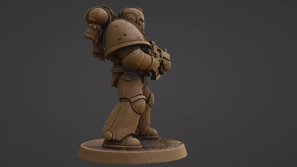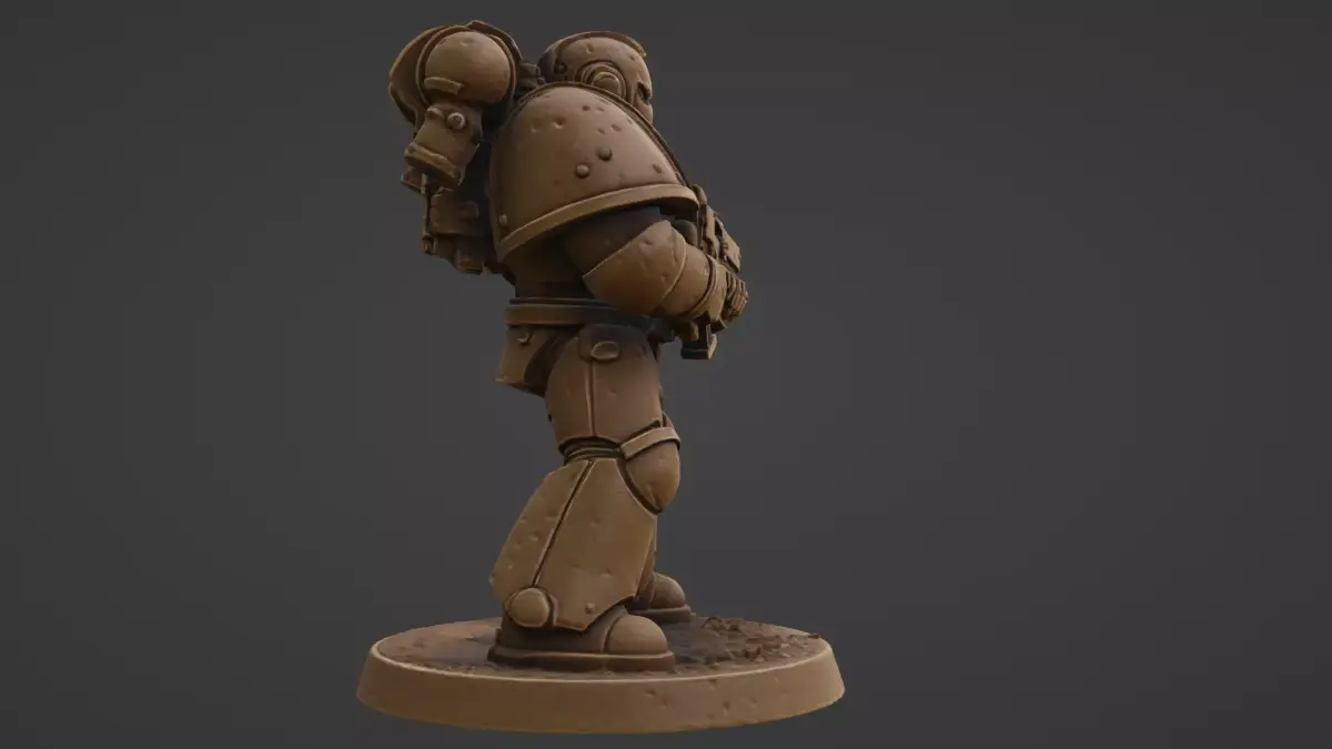Field a rugged power-armored space trooper for your sci-fi tabletop or display shelf. This high-detail sculpt features chunky plate armor, vented backpack, ribbed respirator helm, and a compact carbine—all posed on a textured rocky base for instant presence after priming. Engineered as a single solid STL for easy slicing and sturdy prints.