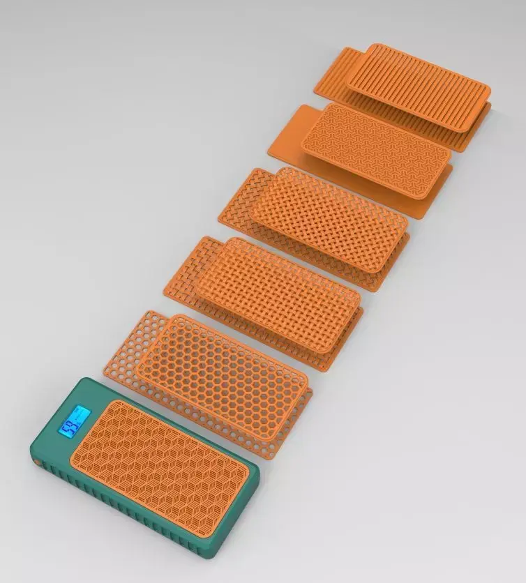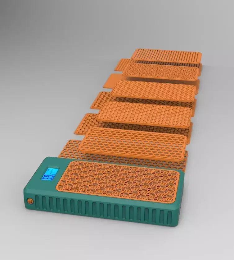 This is a power bank enclosure. The front face and back face can be change. Space for the bettery is LxWxH-130mmX72mmX22mm . I used 10000 mah X 2 battery . So power of the power bank will be 20000 mah. Use hard plastic for the enclosure and front-back support. After assemble you have to apply glue to make front and back face secure. I didn't use led flash light in my design, if you want you can make a hole for the flash light. Otherwise you can contact with me.