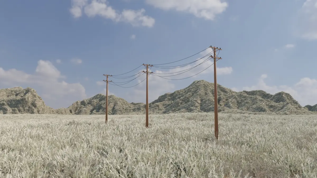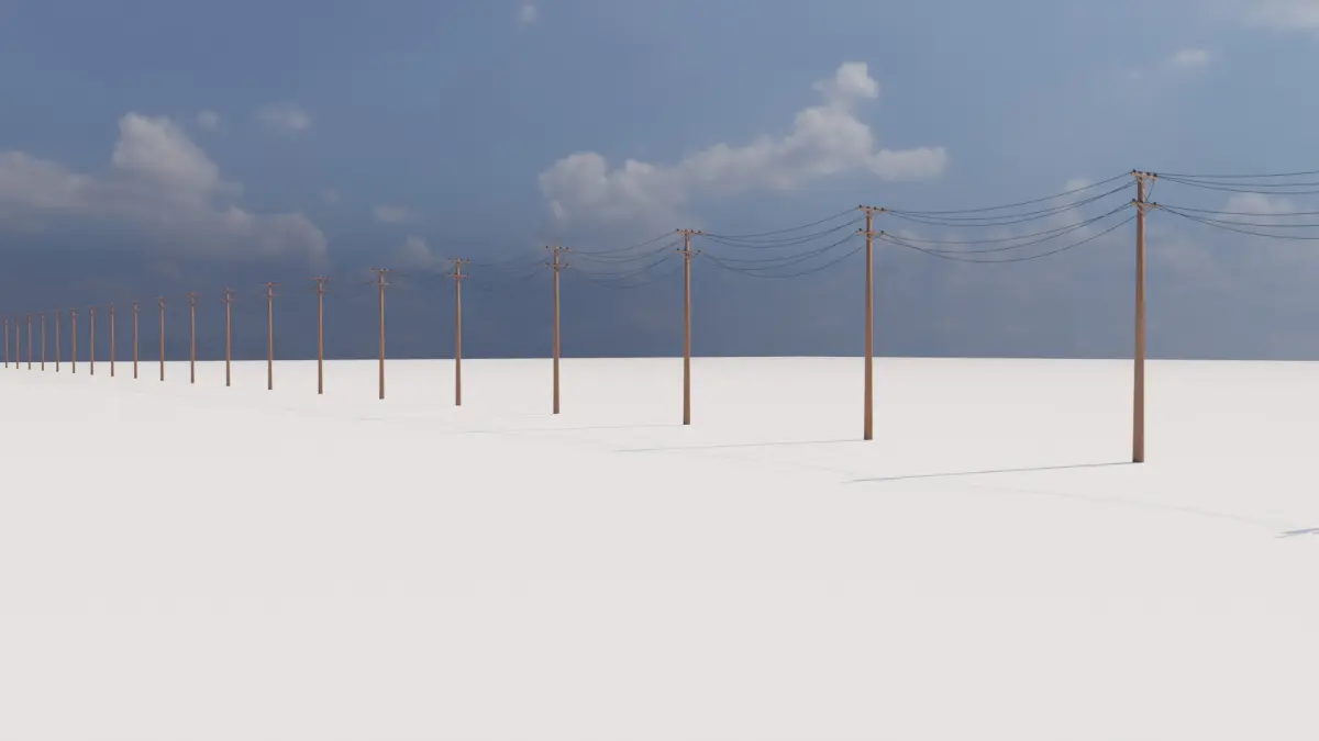 Modular Power Lines, very detailed.These model is more likely to be used in village scenes as it is made of wood. The model includes only the power lines and not the scene. The textures are included as well as textures are attached in the zip file provided.