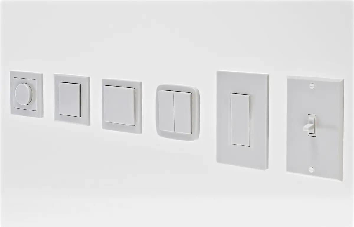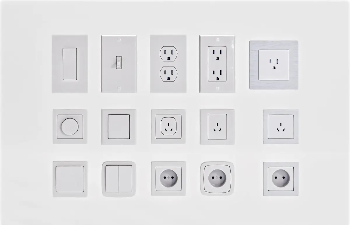 Pack includes: 3 US (A & B); 3 European (C) and 3 AUS and other countries (I) plugs, 6 types of light switches (including a dimmer and a wireless switch)