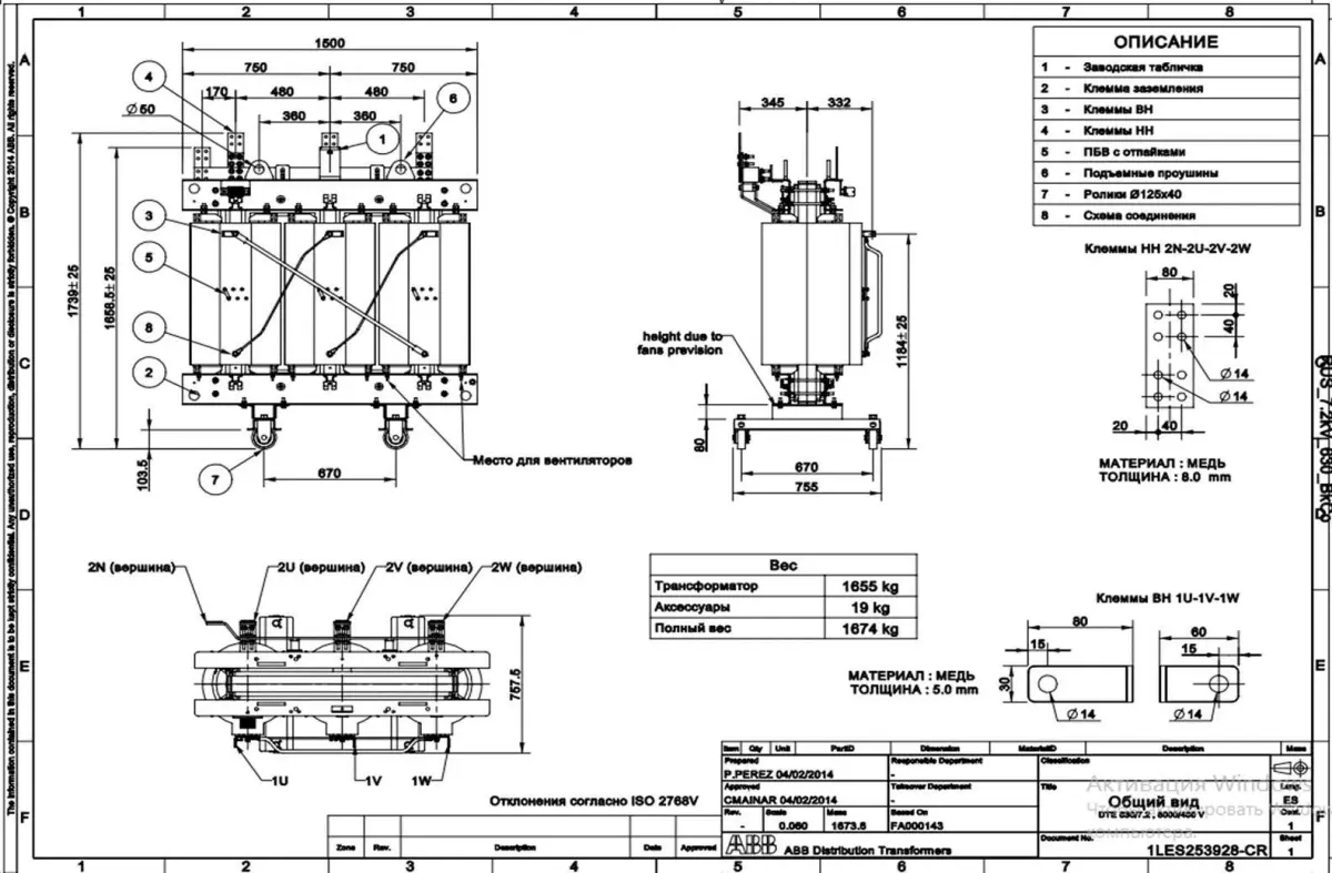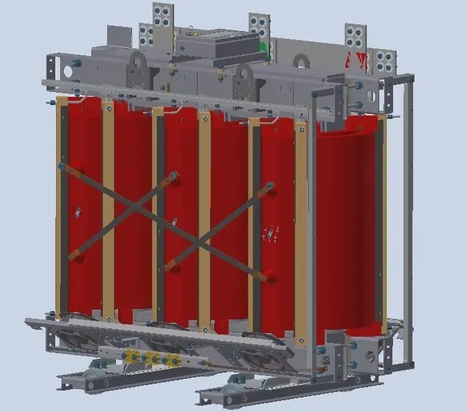 Dry power transformer.The components of the model are glued together for convenient assignment of materials. (All detail)