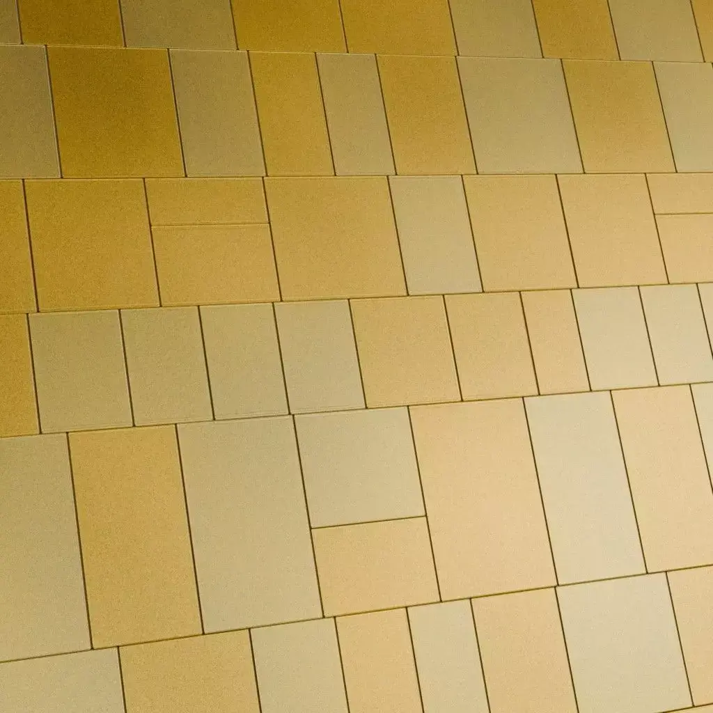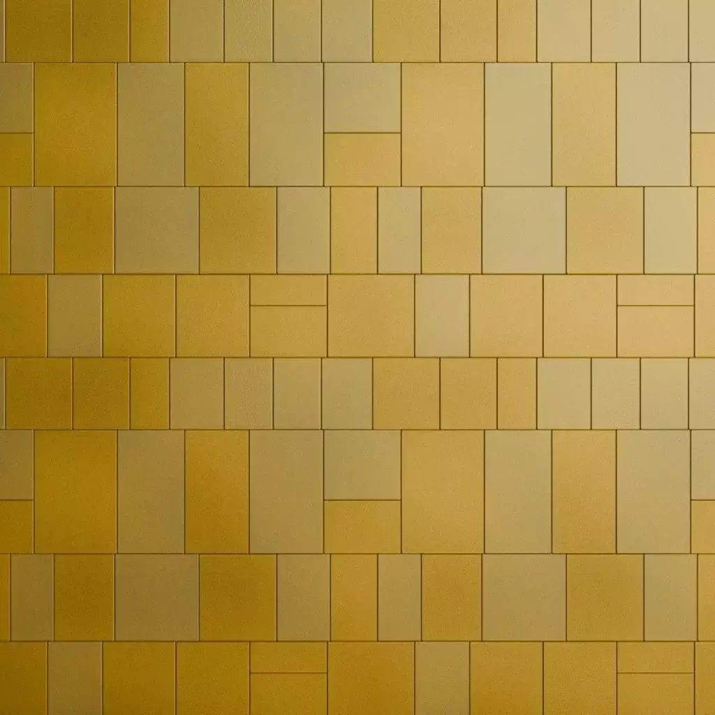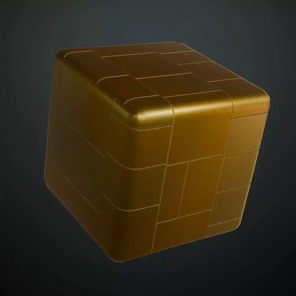 This is a PBR Texture Pack of Powered Metal Golden Design. This material features a premium architectural design consisting of an intricate herringbone or basket-weave pattern made of rectangular gold metallic tiles. The surface has a refined brushed finish with subtle directional grain, creating sophisticated light play and a high-end technical aesthetic. This texture is ideal for luxury interior wall cladding, decorative sci-fi flooring, or ornate futuristic paneling where a prestigious and complex geometric look is required. All essential maps, including BaseColor, Normal, Roughness, Height, and Metallic, are provided to ensure high-fidelity realism and premium light interaction in your 3D scenes.