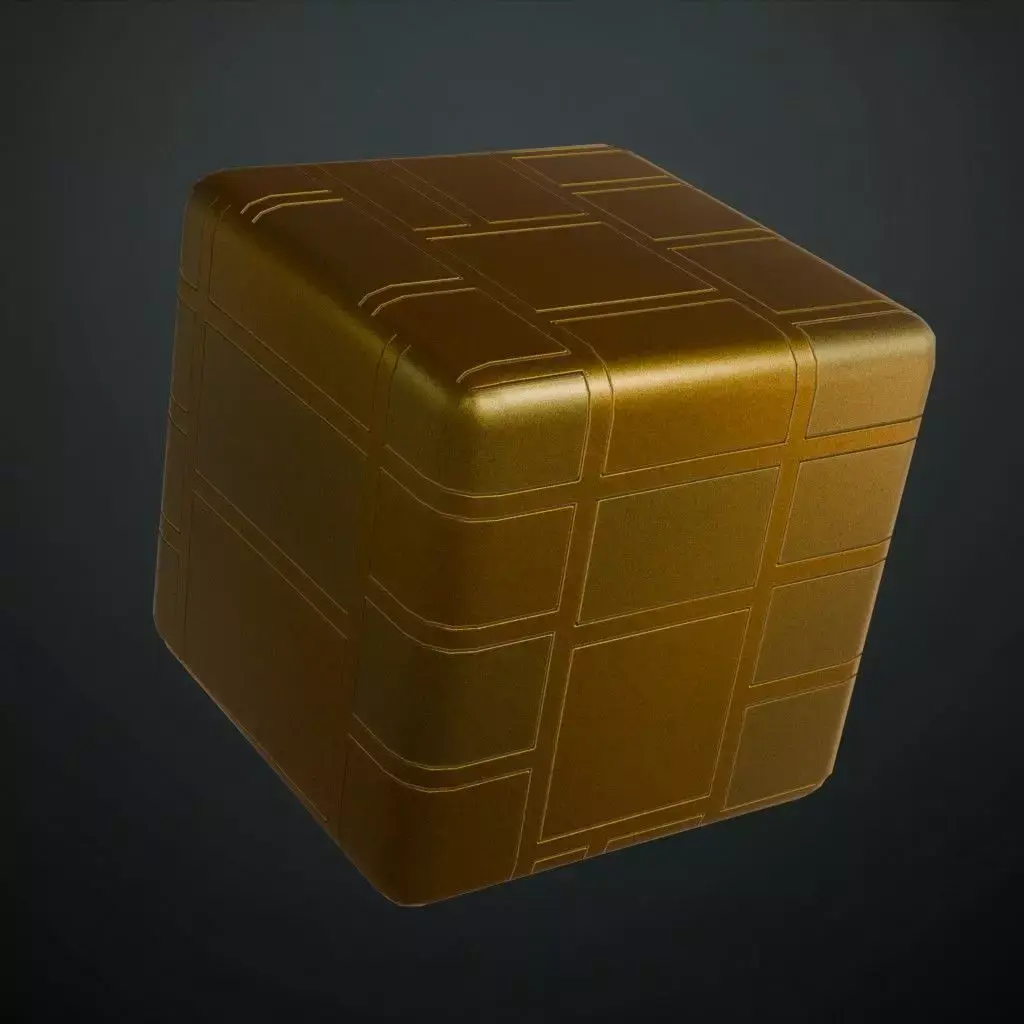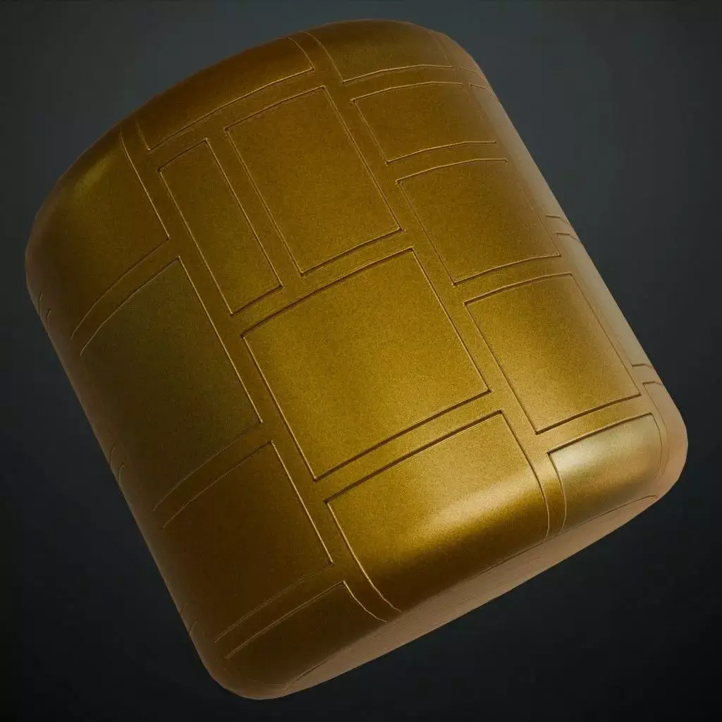 This is a PBR Texture Pack of Powered Metal Golden Design. This material features a premium architectural design consisting of an intricate herringbone or basket-weave pattern made of rectangular gold metallic tiles. The surface has a refined brushed finish with subtle directional grain, creating sophisticated light play and a high-end technical aesthetic. This texture is ideal for luxury interior wall cladding, decorative sci-fi flooring, or ornate futuristic paneling where a prestigious and complex geometric look is required. All essential maps, including BaseColor, Normal, Roughness, Height, and Metallic, are provided to ensure high-fidelity realism and premium light interaction in your 3D scenes.