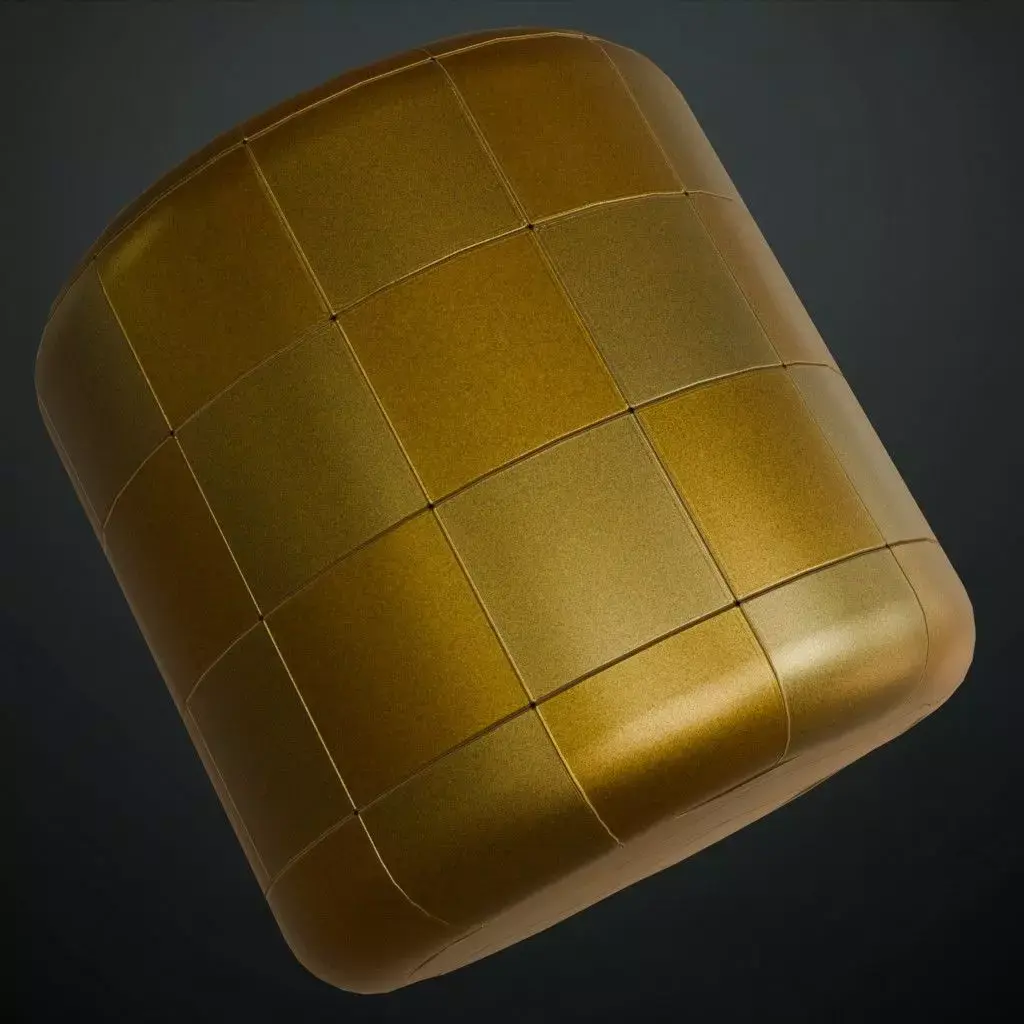 This is a PBR Texture Pack of Powered Metal Golden Design. This material features a premium architectural design consisting of an intricate herringbone or basket-weave pattern made of rectangular gold metallic tiles. The surface has a refined brushed finish with subtle directional grain, creating sophisticated light play and a high-end technical aesthetic. This texture is ideal for luxury interior wall cladding, decorative sci-fi flooring, or ornate futuristic paneling where a prestigious and complex geometric look is required. All essential maps, including BaseColor, Normal, Roughness, Height, and Metallic, are provided to ensure high-fidelity realism and premium light interaction in your 3D scenes.