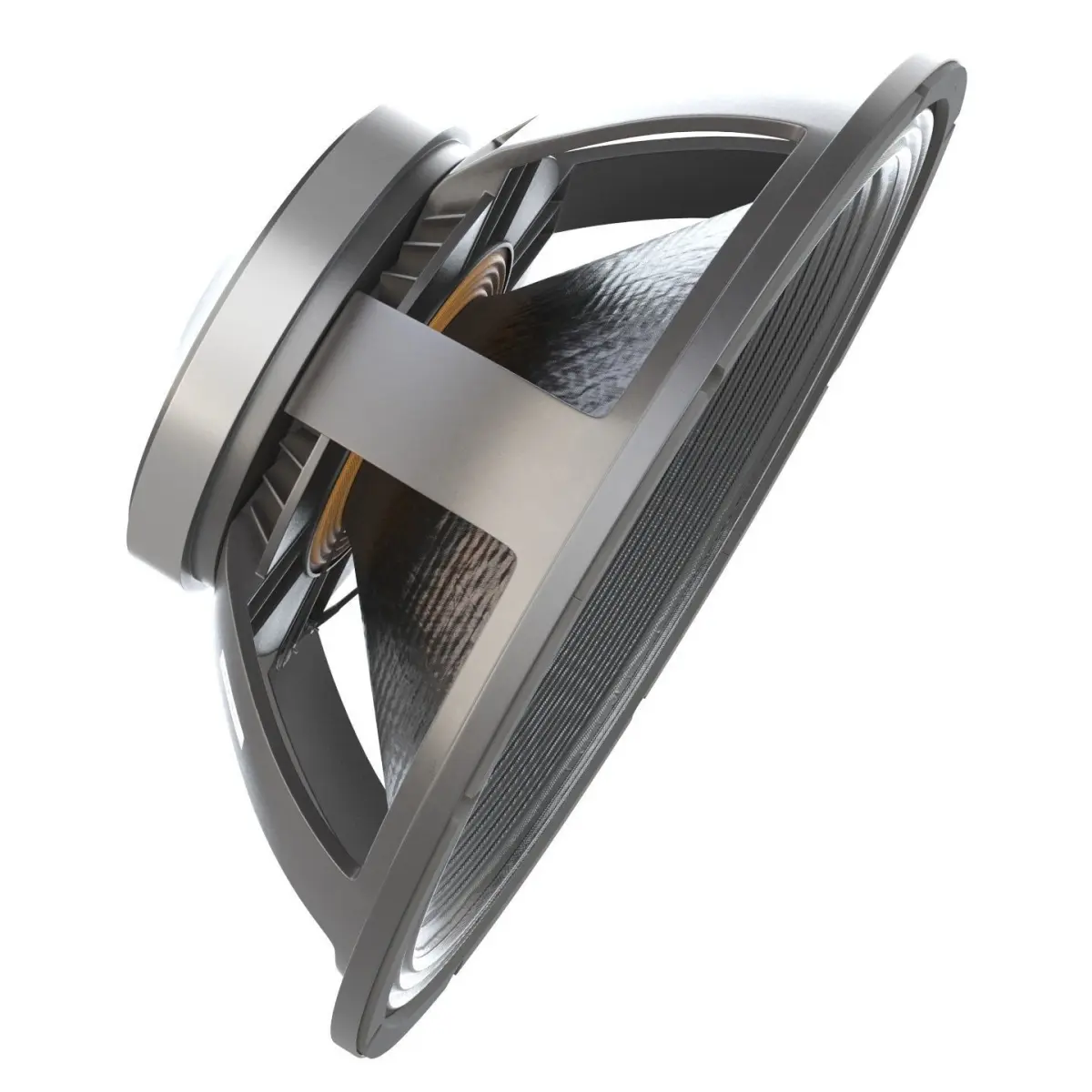 Highly detailed model of a powerful woofer. 2400W, 35-1000hz, Sensitivity (1W/1m)97.0 dB, Nominal impedance 8 Ohm