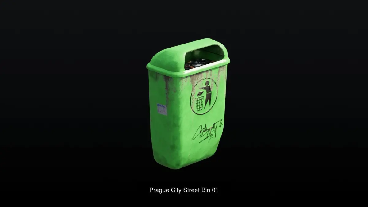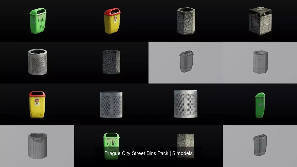 A pack of 5 bins commonly found around the streets of Prague, Czech Republic.