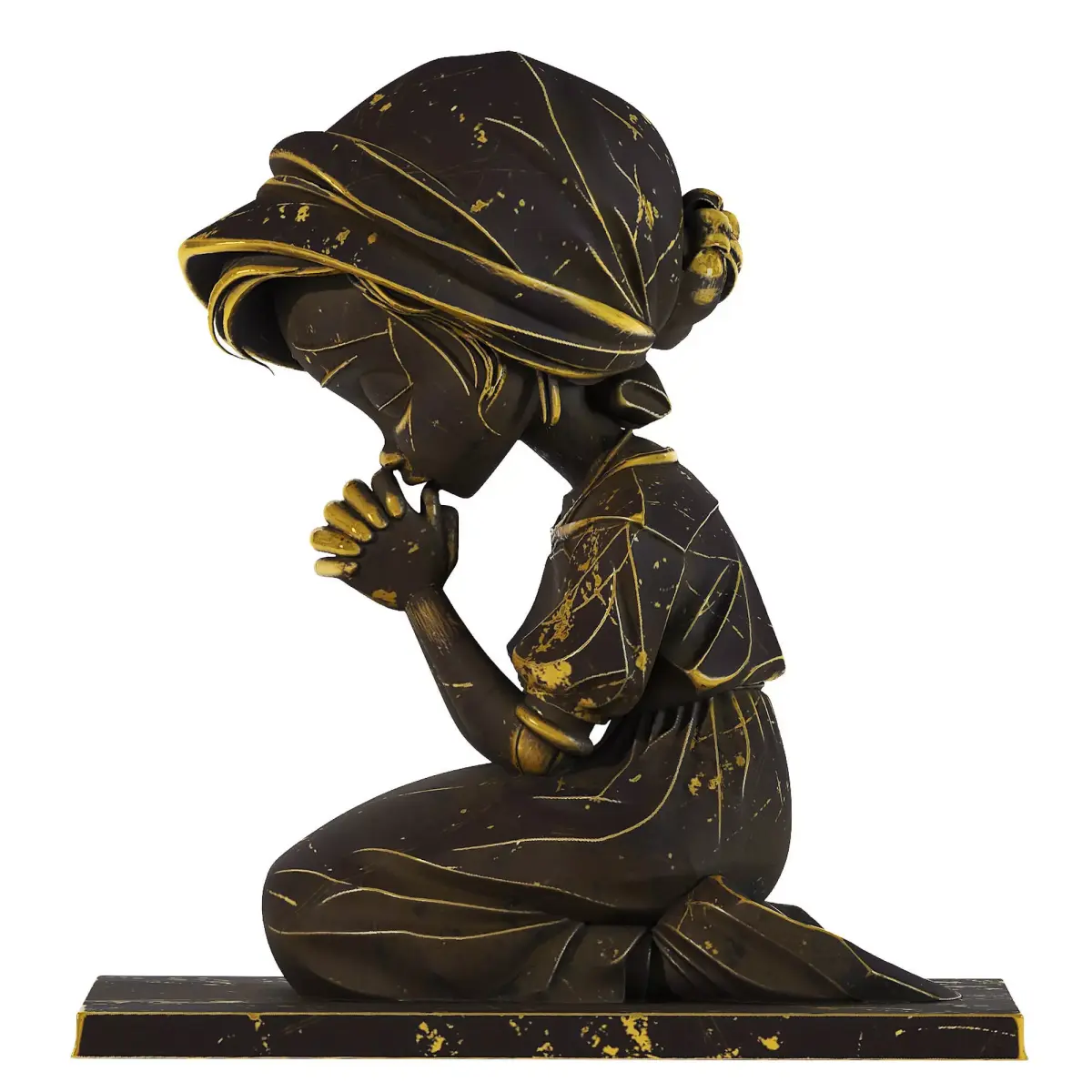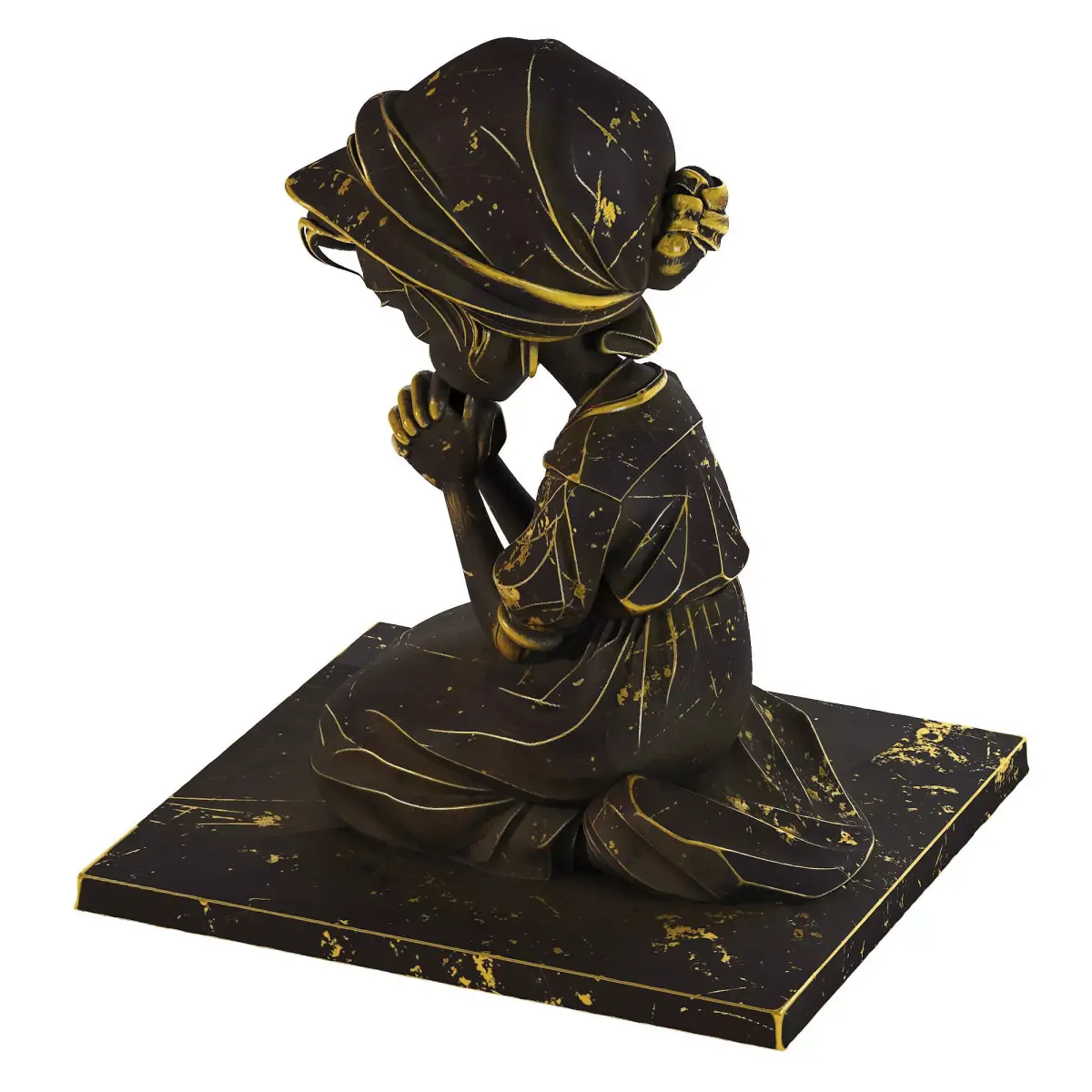 Base: The figure sits on a matching square platform with gold scratch details.