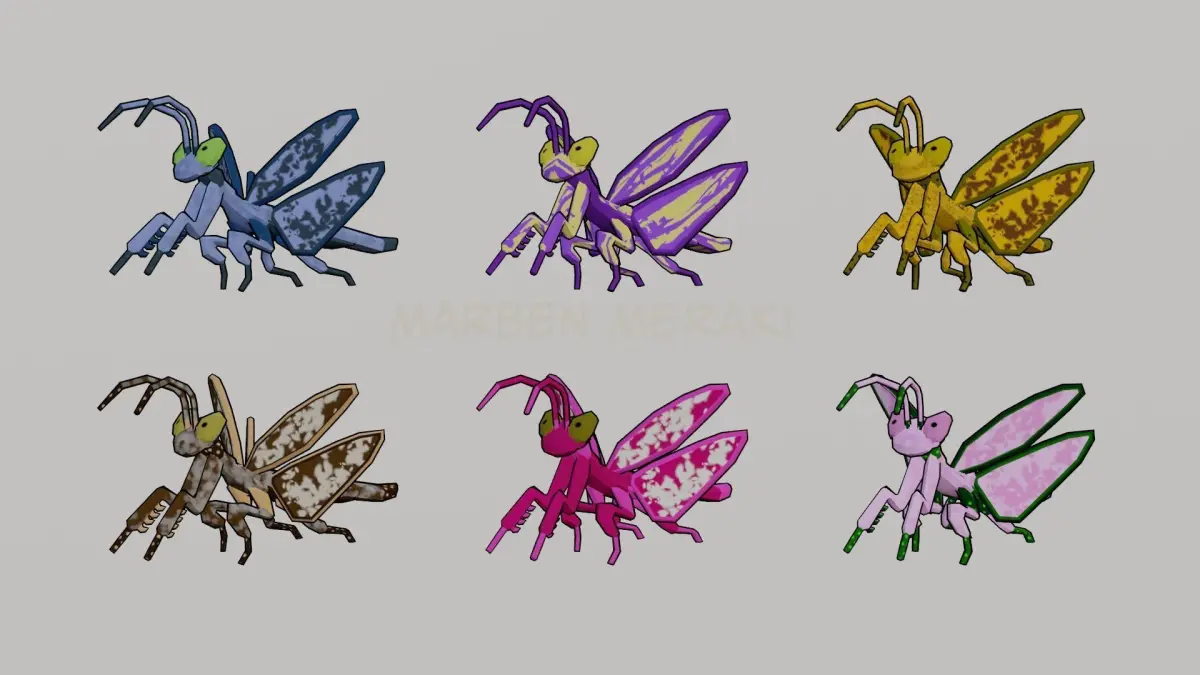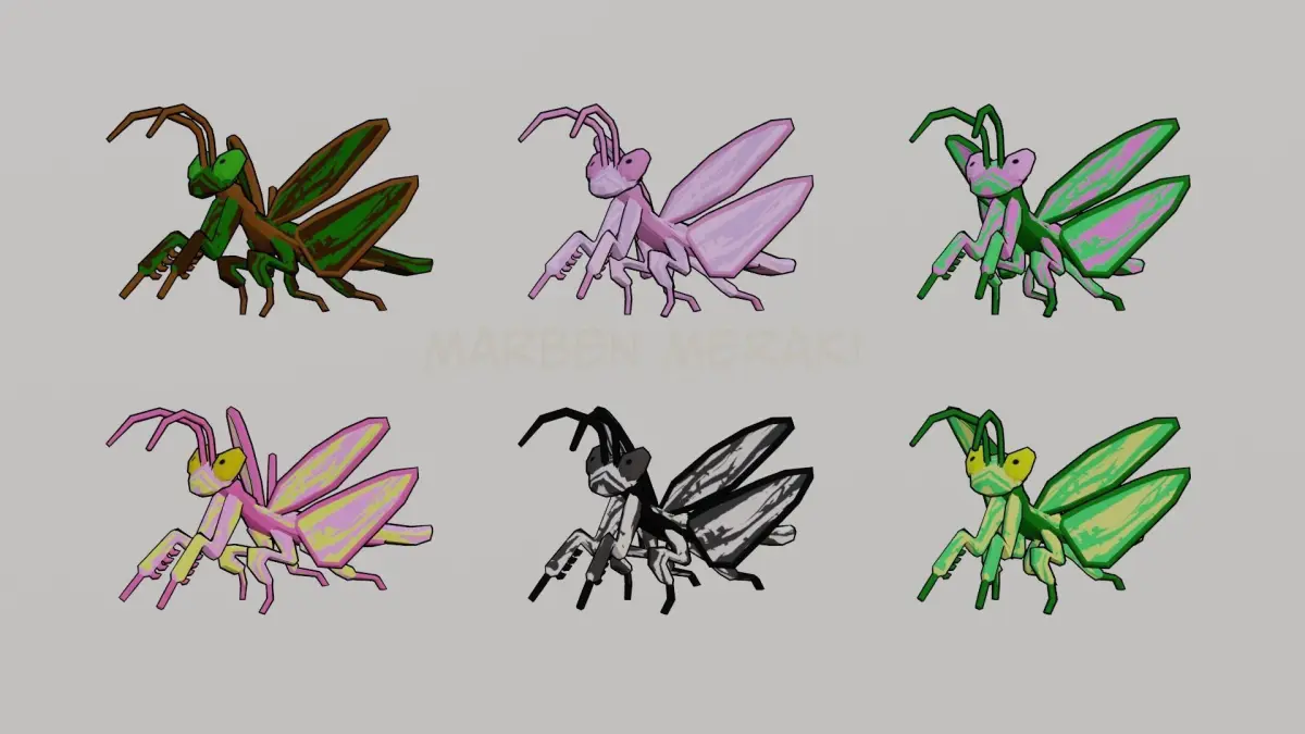 Animation's: Mantis_Eye_CleanMantis_IdleMantis_Idle_Side_to_Side_AMantis_Idle_Side_to_Side_BMantis_Idle_WingMantis_JumpMantis_StandMantis_Stand_AttackMantis_Up_Idle_BowMantis_Walk