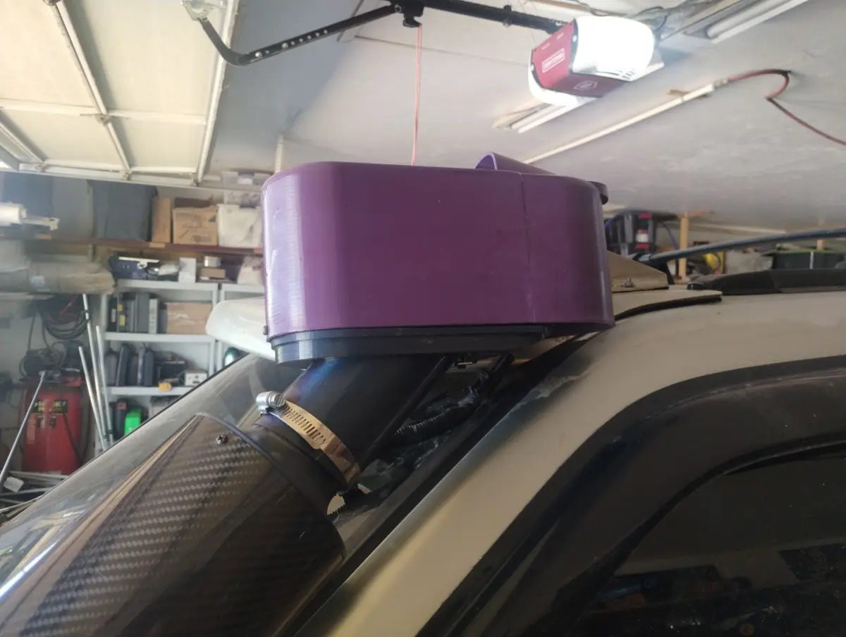 allowing to use 2 60mm atv filters on your snorkle intake the middle and bottom need to be glued together realy good so you dont get stuff by passing the filters. the top snapson from back to front and one screw in the front to hold it on and a hoseclamp at the bottom. this is setat a 32 degree angle to flow with the window of a r50 pathfinder