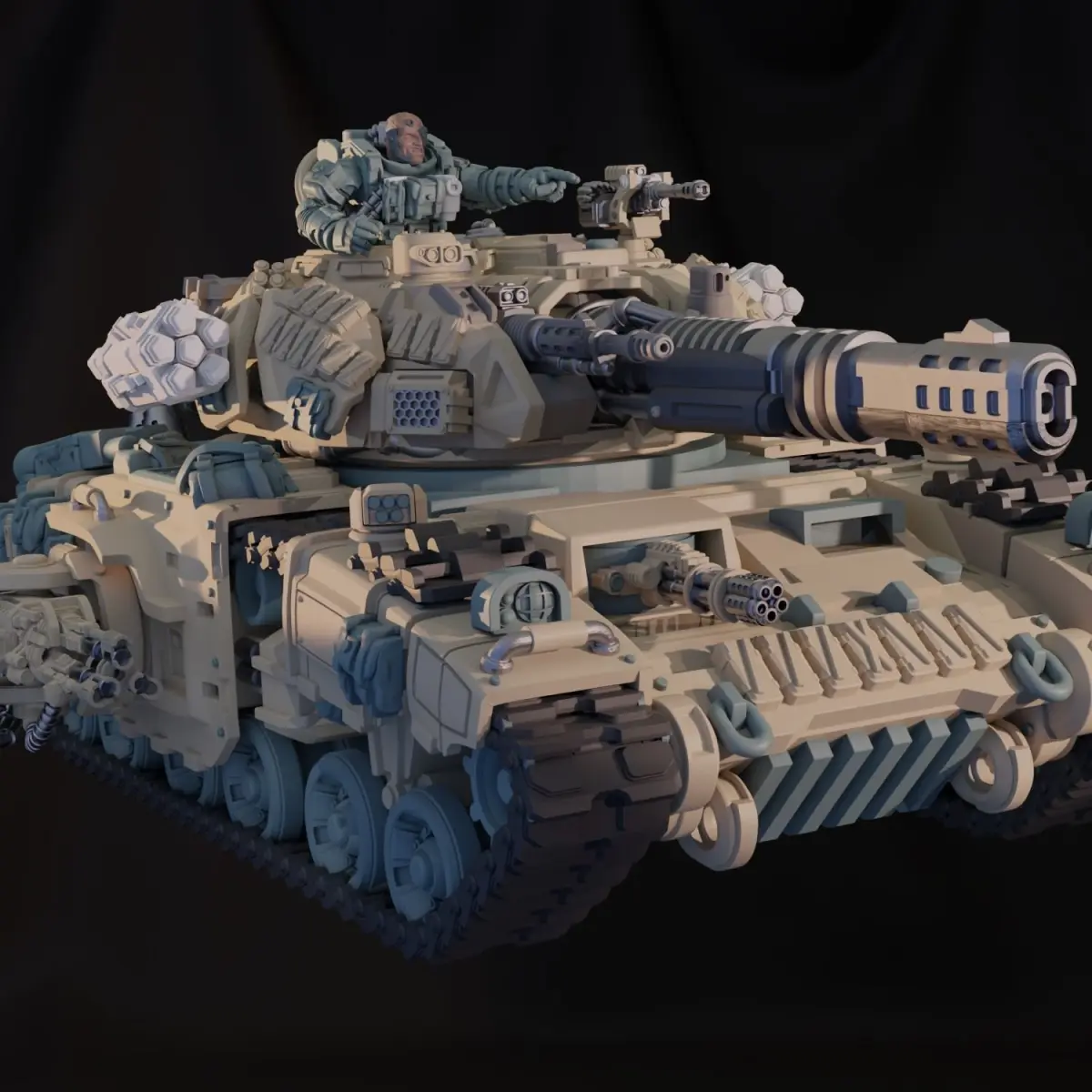Introducing the Dominion Smoke Jaguar, a cutting-edge heavy frontline battle tank designed for unrivaled power and dominance on the battlefield. This tank combines advanced technology with formidable firepower.